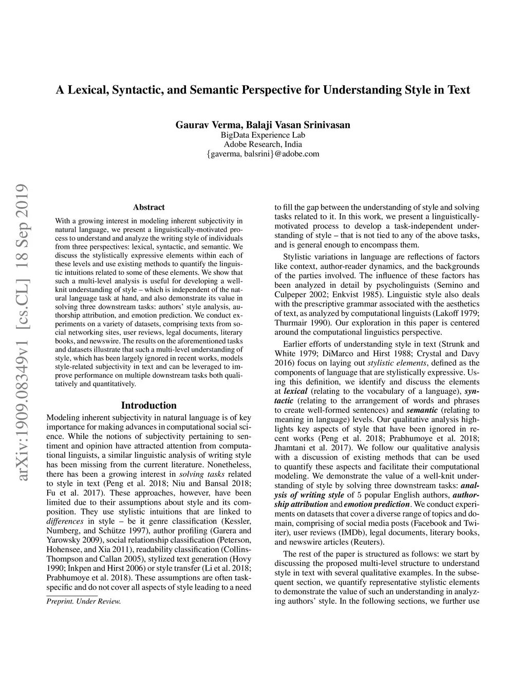 With a growing interest in modeling inherent subjectivity in natural language, we present a linguistically-motivated process to understand and analyze the writing style of individuals from three perspectives: lexical, syntactic, and semantic. We discuss the stylistically expressive elements within each of these levels and use existing methods to quantify the linguistic intuitions related to some of these elements. We show that such a multi-level analysis is useful for developing a well-knit understanding of style - which is independent of the natural language task at hand, and also demonstrate its value in solving three downstream tasks: authors' style analysis, authorship attribution, and emotion prediction. We conduct experiments on a variety of datasets, comprising texts from social networking sites, user reviews, legal documents, literary books, and newswire. The results on the aforementioned tasks and datasets illustrate that such a multi-level understanding of style, which has been largely ignored in recent works, models style-related subjectivity in text and can be leveraged to improve performance on multiple downstream tasks both qualitatively and quantitatively.
