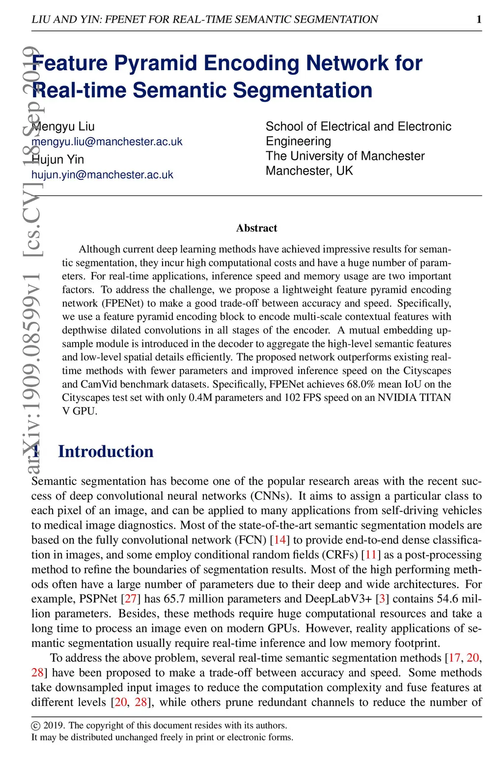 Feature Pyramid Encoding Network for Real-time Semantic Segmentation