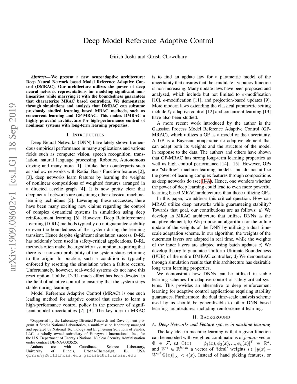 We present a new neuroadaptive architecture: Deep Neural Network based Model Reference Adaptive Control (DMRAC). Our architecture utilizes the power of deep neural network representations for modeling significant nonlinearities while marrying it with the boundedness guarantees that characterize MRAC based controllers. We demonstrate through simulations and analysis that DMRAC can subsume previously studied learning based MRAC methods, such as concurrent learning and GP-MRAC. This makes DMRAC a highly powerful architecture for high-performance control of nonlinear systems with long-term learning properties.