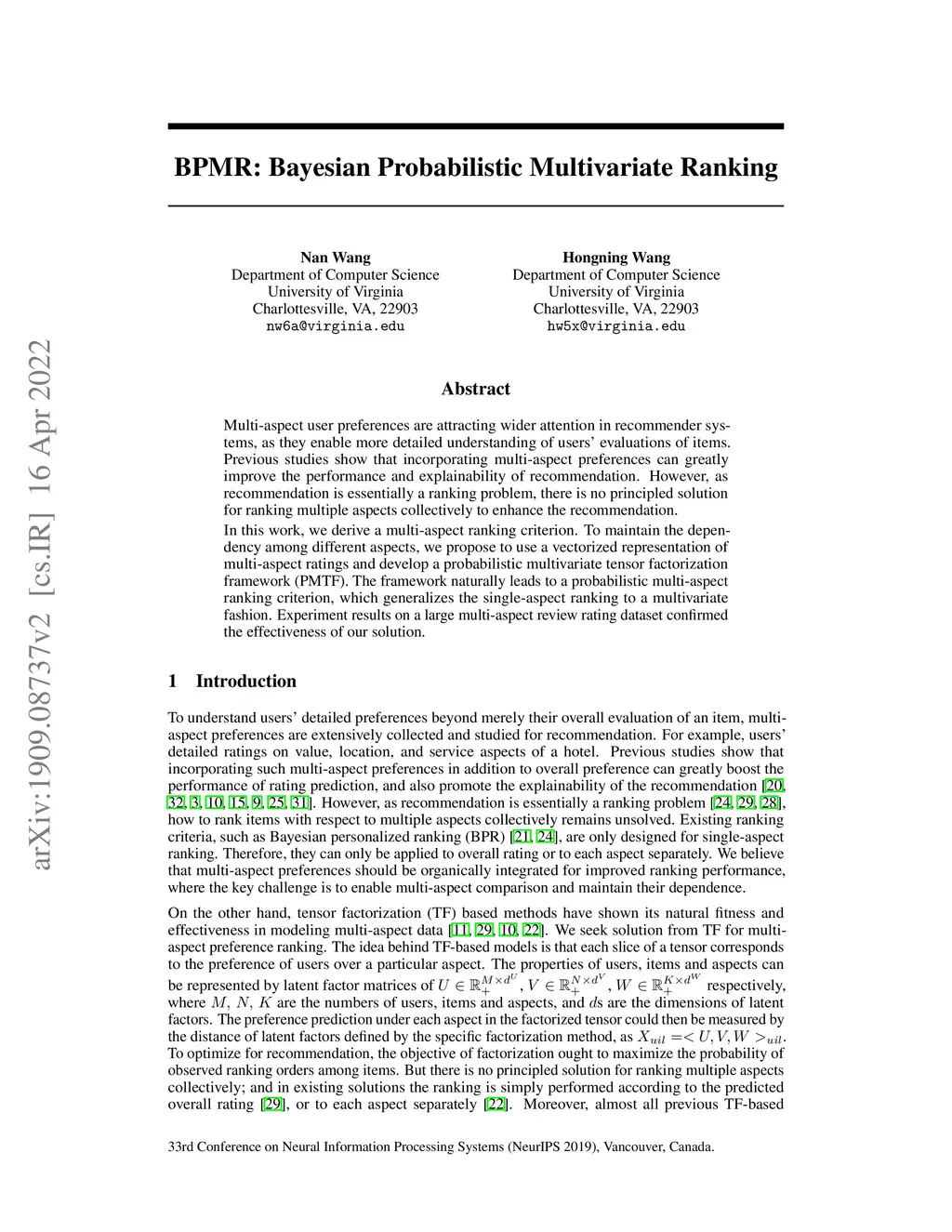 BPMR: Bayesian Probabilistic Multivariate Ranking