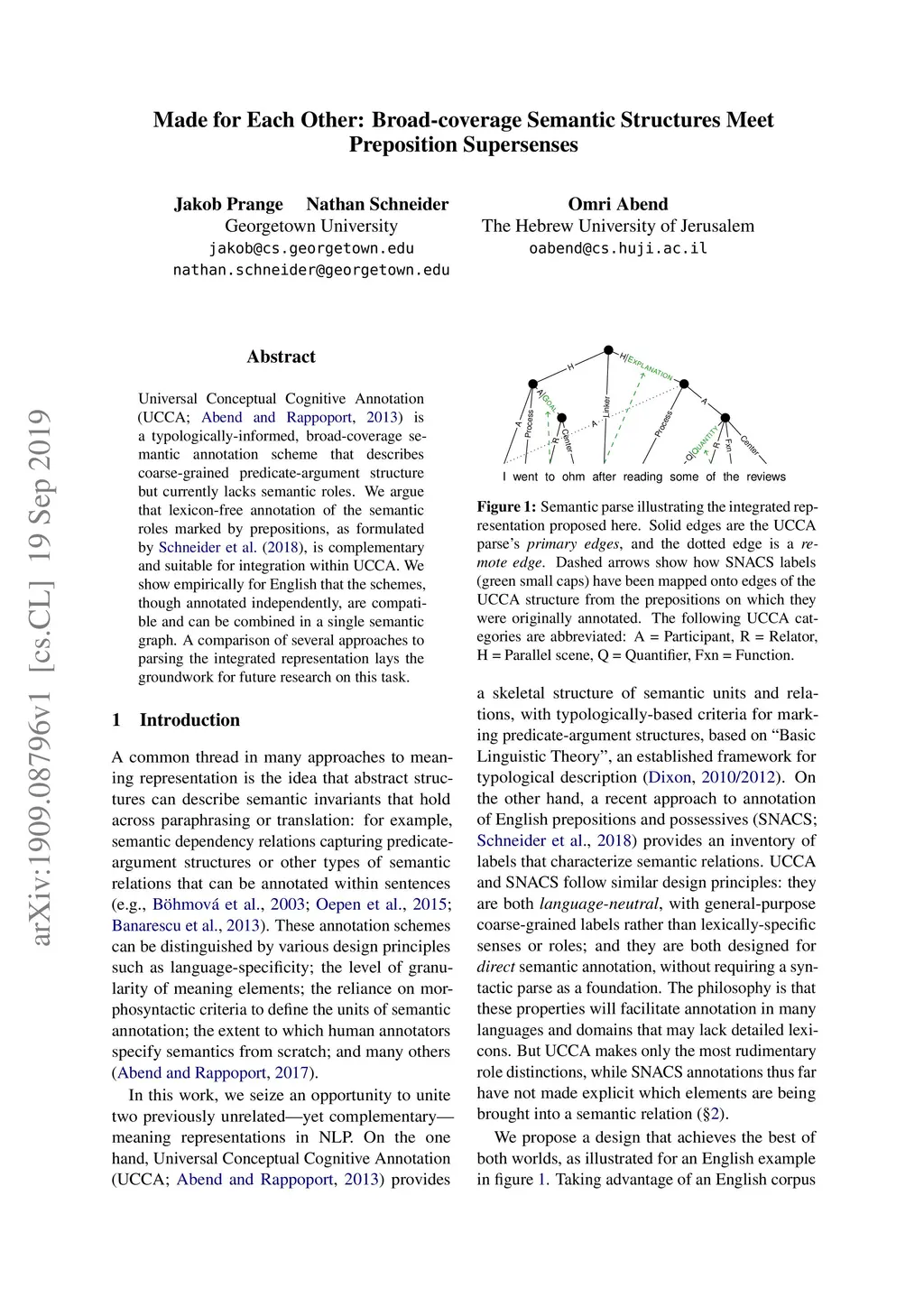 Universal Conceptual Cognitive Annotation (UCCA; Abend and Rappoport, 2013) is a typologically-informed, broad-coverage semantic annotation scheme that describes coarse-grained predicate-argument structure but currently lacks semantic roles. We argue that lexicon-free annotation of the semantic roles marked by prepositions, as formulated by Schneider et al. (2018b), is complementary and suitable for integration within UCCA. We show empirically for English that the schemes, though annotated independently, are compatible and can be combined in a single semantic graph. A comparison of several approaches to parsing the integrated representation lays the groundwork for future research on this task.