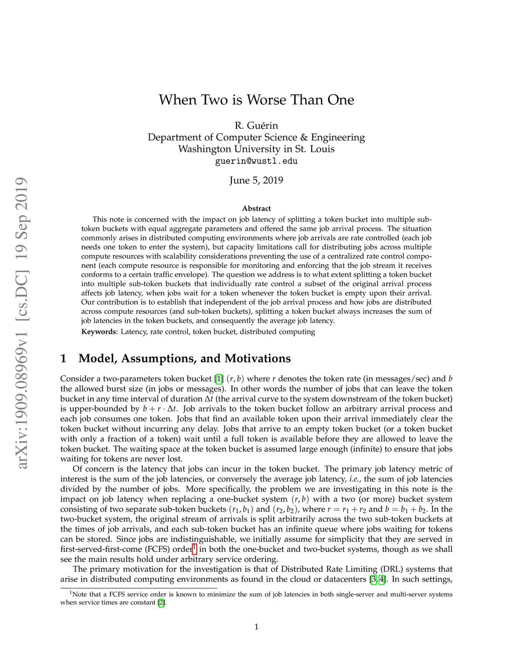 This note is concerned with the impact on job latency of splitting a token bucket into multiple sub-token buckets with equal aggregate parameters and offered the same job arrival process. The situation commonly arises in distributed computing environments where job arrivals are rate controlled (each job needs one token to enter the system), but capacity limitations call for distributing jobs across multiple compute resources with scalability considerations preventing the use of a centralized rate control component (each compute resource is responsible for monitoring and enforcing that the job stream it receives conforms to a certain traffic envelope). The question we address is to what extent splitting a token bucket into multiple sub-token buckets that individually rate control a subset of the original arrival process affects job latency, when jobs wait for a token whenever the token bucket is empty upon their arrival. Our contribution is to establish that independent of the job arrival process and how jobs are distributed across compute resources (and sub-token buckets), splitting a token bucket always increases the sum of job latencies in the token buckets, and consequently the average job latency.