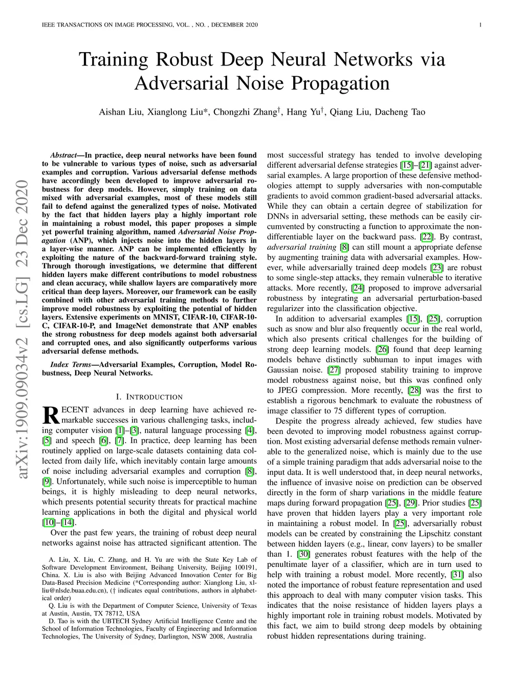 Training Robust Deep Neural Networks via Adversarial Noise Propagation