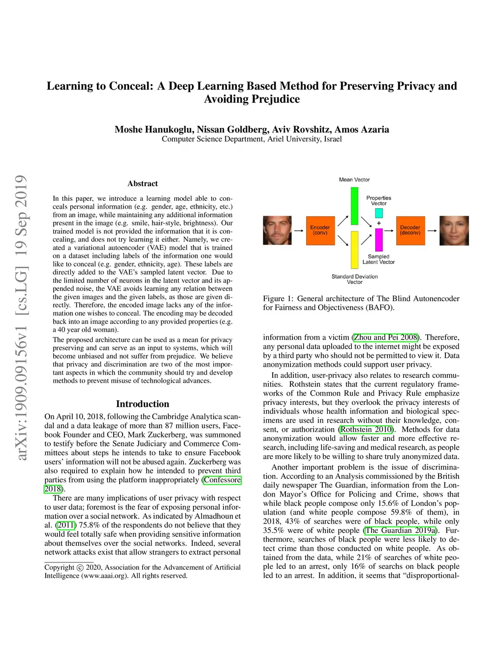 In this paper, we introduce a learning model able to conceals personal information (e.g. gender, age, ethnicity, etc.) from an image, while maintaining any additional information present in the image (e.g. smile, hair-style, brightness). Our trained model is not provided the information that it is concealing, and does not try learning it either. Namely, we created a variational autoencoder (VAE) model that is trained on a dataset including labels of the information one would like to conceal (e.g. gender, ethnicity, age). These labels are directly added to the VAE's sampled latent vector. Due to the limited number of neurons in the latent vector and its appended noise, the VAE avoids learning any relation between the given images and the given labels, as those are given directly. Therefore, the encoded image lacks any of the information one wishes to conceal. The encoding may be decoded back into an image according to any provided properties (e.g. a 40 year old woman). The proposed architecture can be used as a mean for privacy preserving and can serve as an input to systems, which will become unbiased and not suffer from prejudice. We believe that privacy and discrimination are two of the most important aspects in which the community should try and develop methods to prevent misuse of technological advances.