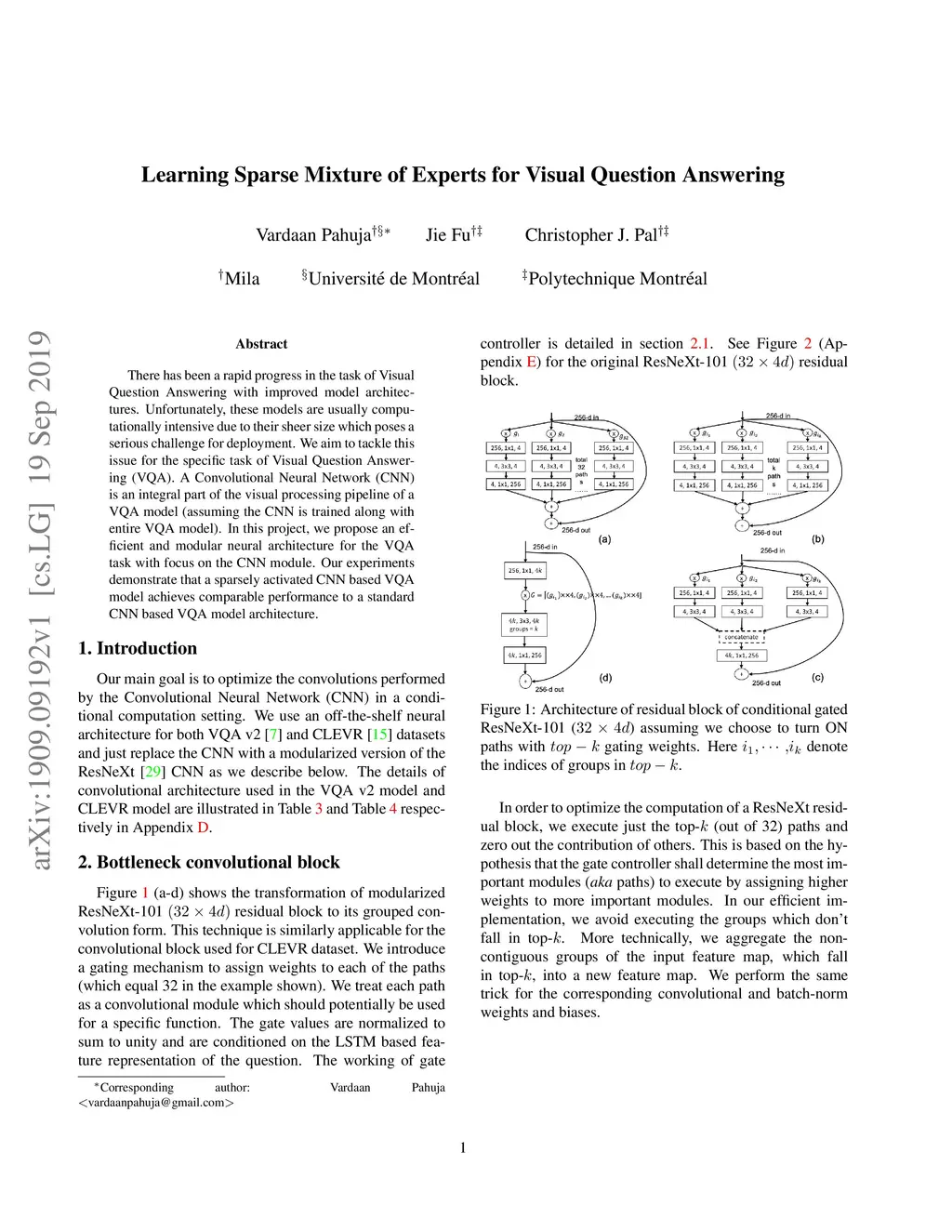 Learning Sparse Mixture of Experts for Visual Question Answering