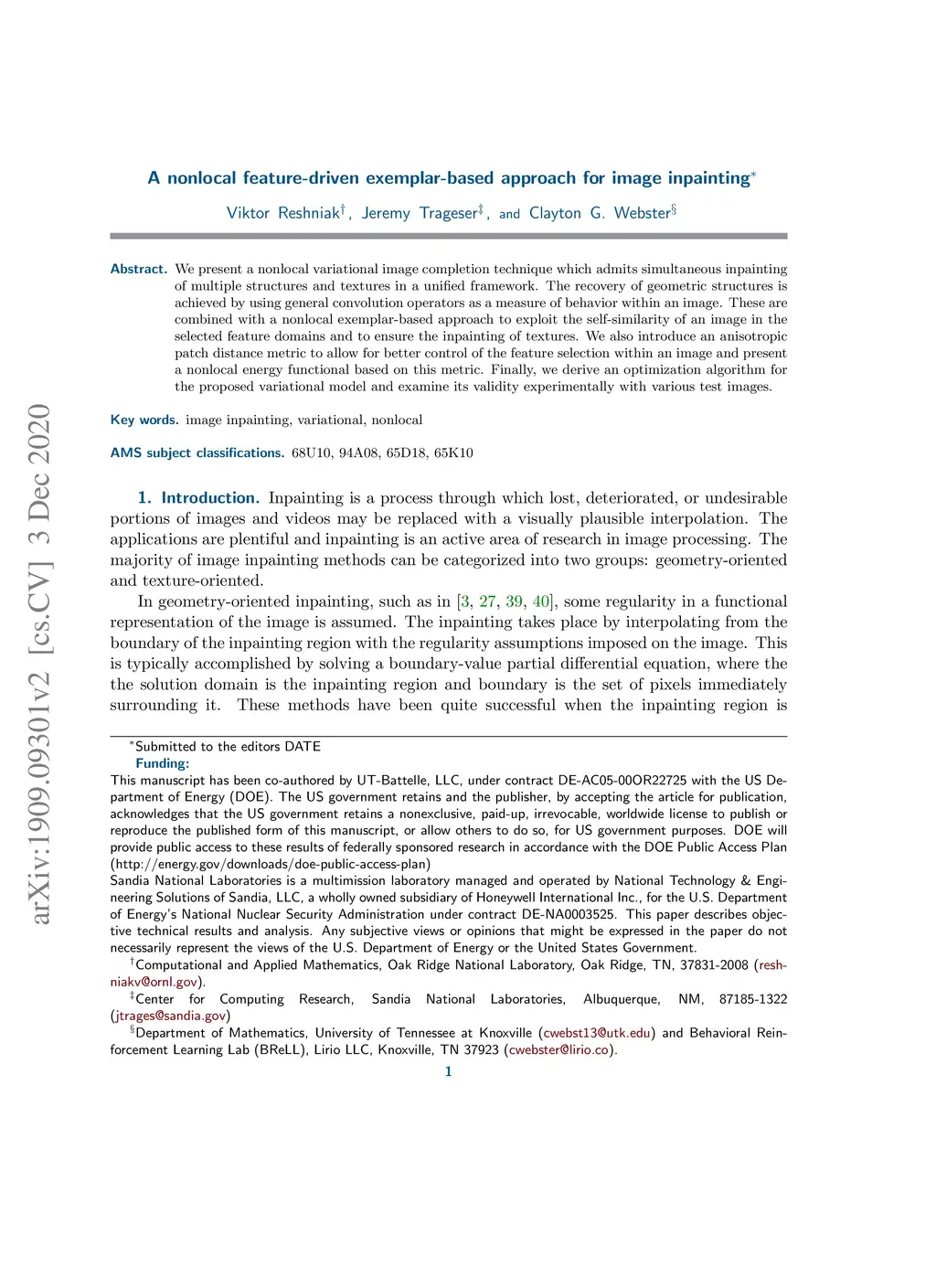 A nonlocal feature-driven exemplar-based approach for image inpainting