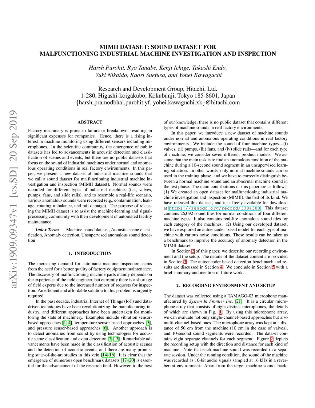 MIMII Dataset: Sound Dataset for Malfunctioning Industrial Machine