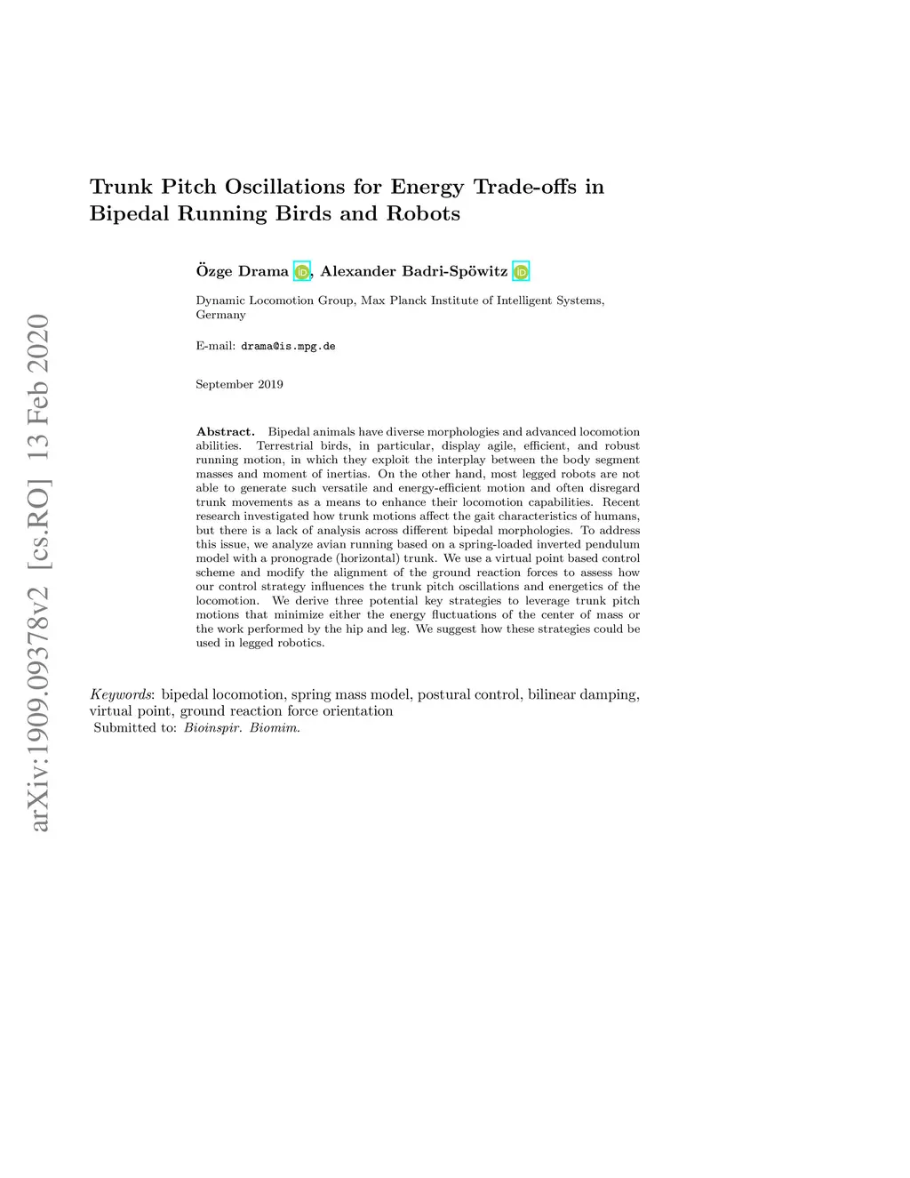 Trunk Pitch Oscillations for Energy Trade-offs in Bipedal Running Birds