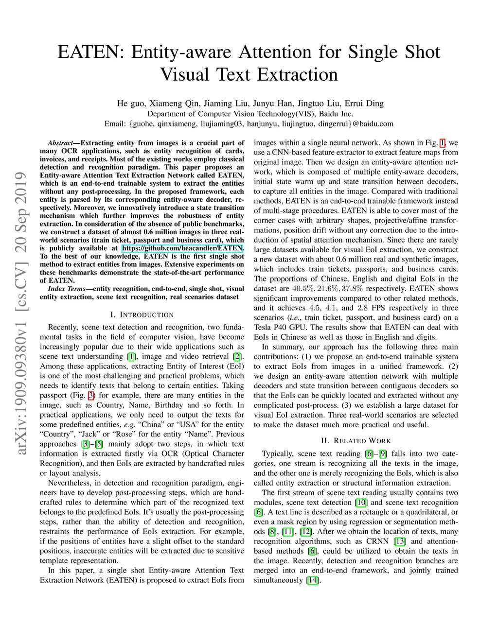 EATEN: Entity-aware Attention for Single Shot Visual Text Extraction