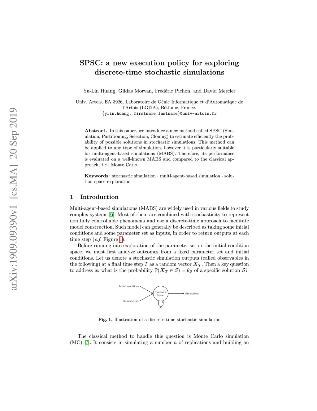 In this paper, we introduce a new method called SPSC (Simulation, Partitioning, Selection, Cloning) to estimate efficiently the probability of possible solutions in stochastic simulations. This method can be applied to any type of simulation, however it is particularly suitable for multi-agent-based simulations (MABS). Therefore, its performance is evaluated on a well-known MABS and compared to the classical approach, i.e., Monte Carlo.