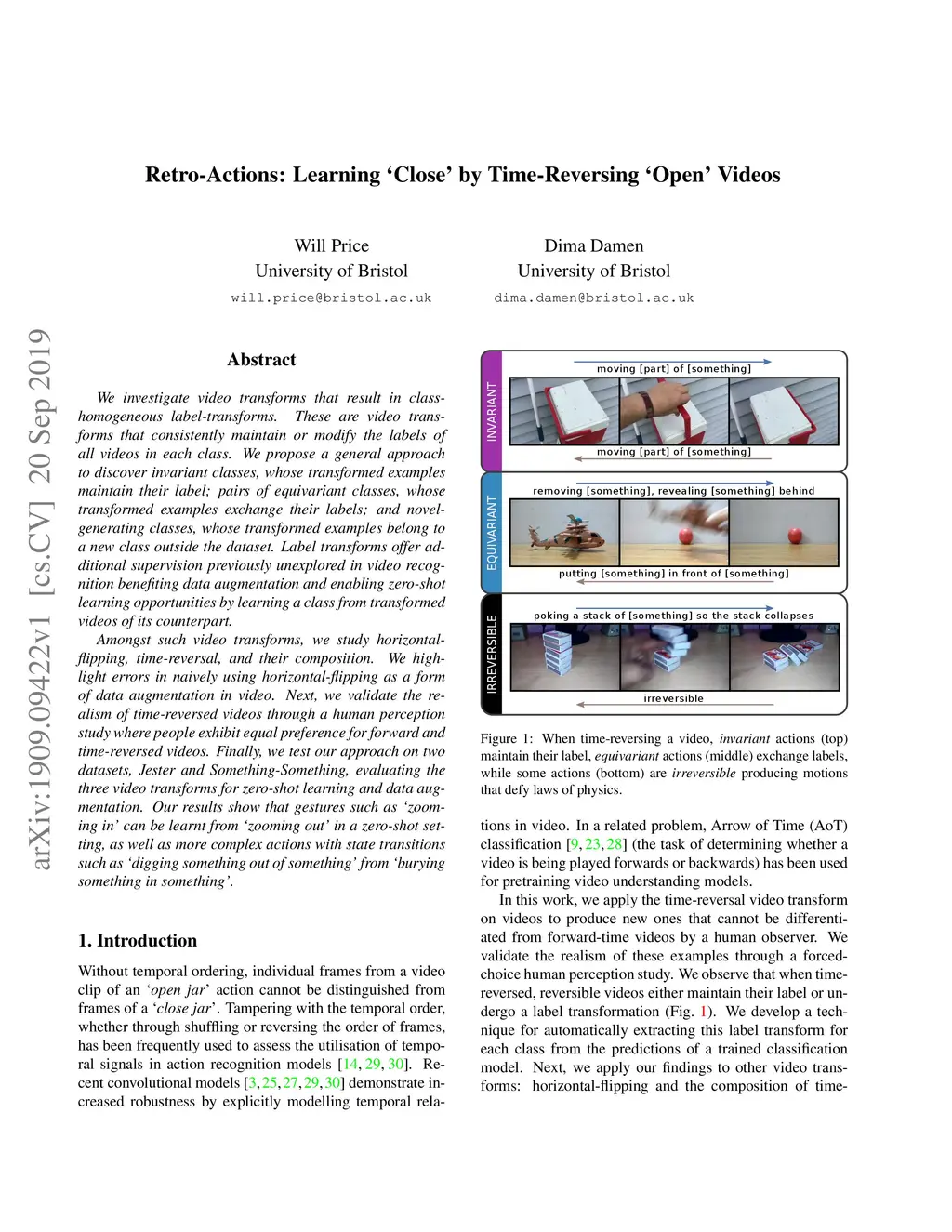 Retro-Actions: Learning 'Close' by Time-Reversing Ópen' Videos