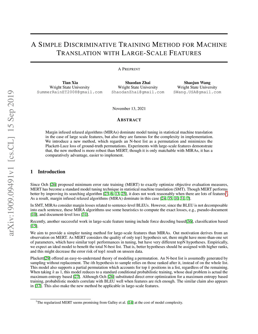 Margin infused relaxed algorithms (MIRAs) dominate model tuning in statistical machine translation in the case of large scale features, but also they are famous for the complexity in implementation. We introduce a new method, which regards an N-best list as a permutation and minimizes the Plackett-Luce loss of ground-truth permutations. Experiments with large-scale features demonstrate that, the new method is more robust than MERT; though it is only matchable with MIRAs, it has a comparatively advantage, easier to implement.