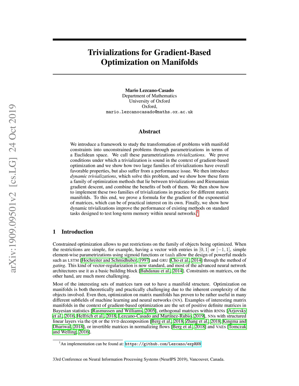 We introduce a framework to study the transformation of problems with manifold constraints into unconstrained problems through parametrizations in terms of a Euclidean space. We call these parametrizations "trivializations". We prove conditions under which a trivialization is sound in the context of gradient-based optimization and we show how two large families of trivializations have overall favorable properties, but also suffer from a performance issue. We then introduce "dynamic trivializations", which solve this problem, and we show how these form a family of optimization methods that lie between trivializations and Riemannian gradient descent, and combine the benefits of both of them. We then show how to implement these two families of trivializations in practice for different matrix manifolds. To this end, we prove a formula for the gradient of the exponential of matrices, which can be of practical interest on its own. Finally, we show how dynamic trivializations improve the performance of existing methods on standard tasks designed to test long-term memory within neural networks.