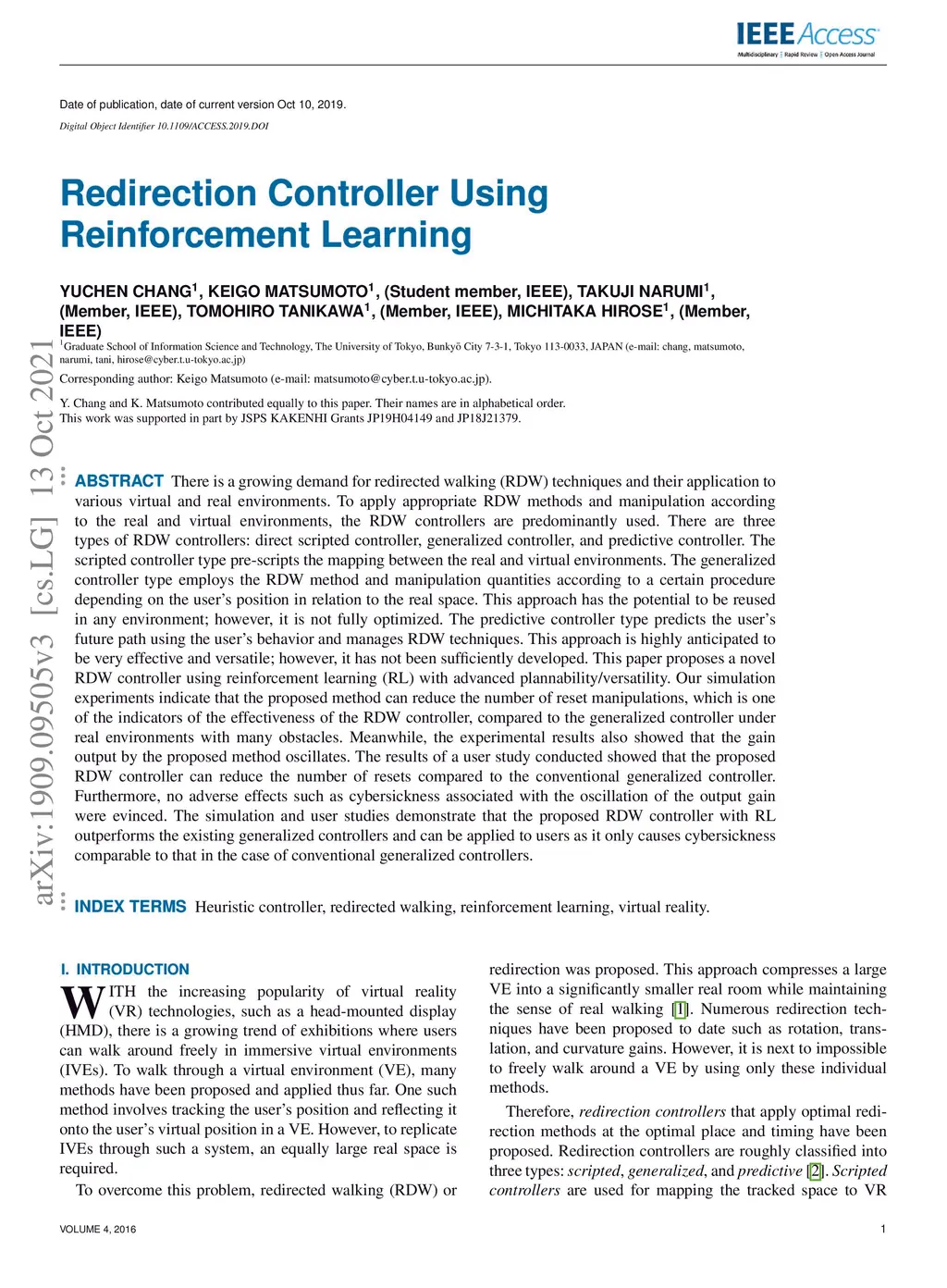 Redirection Controller Using Reinforcement Learning
