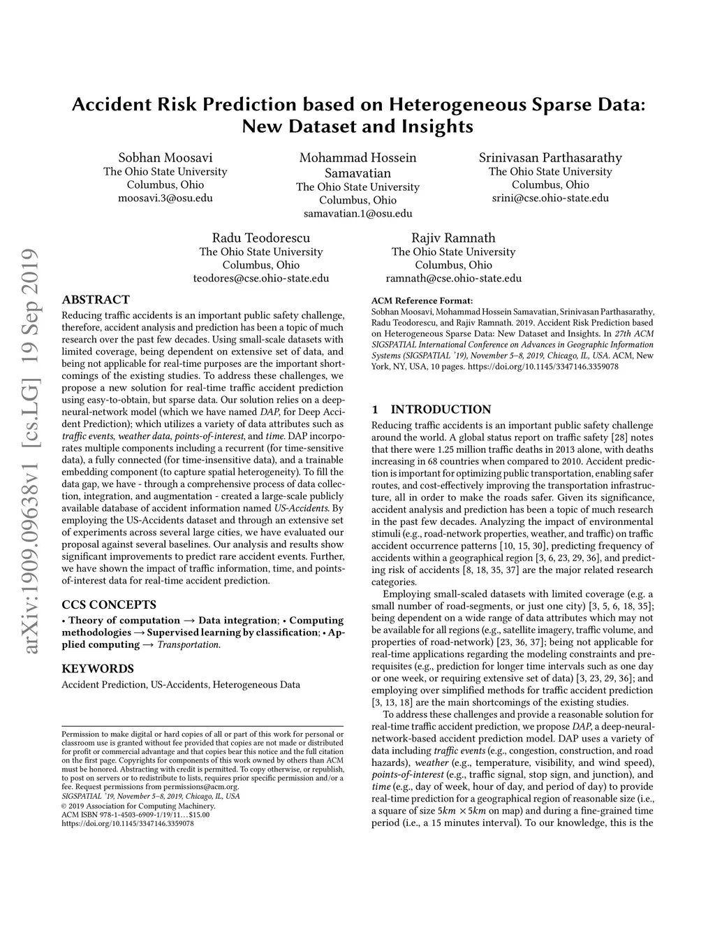 Accident Risk Prediction based on Heterogeneous Sparse Data: New Dataset