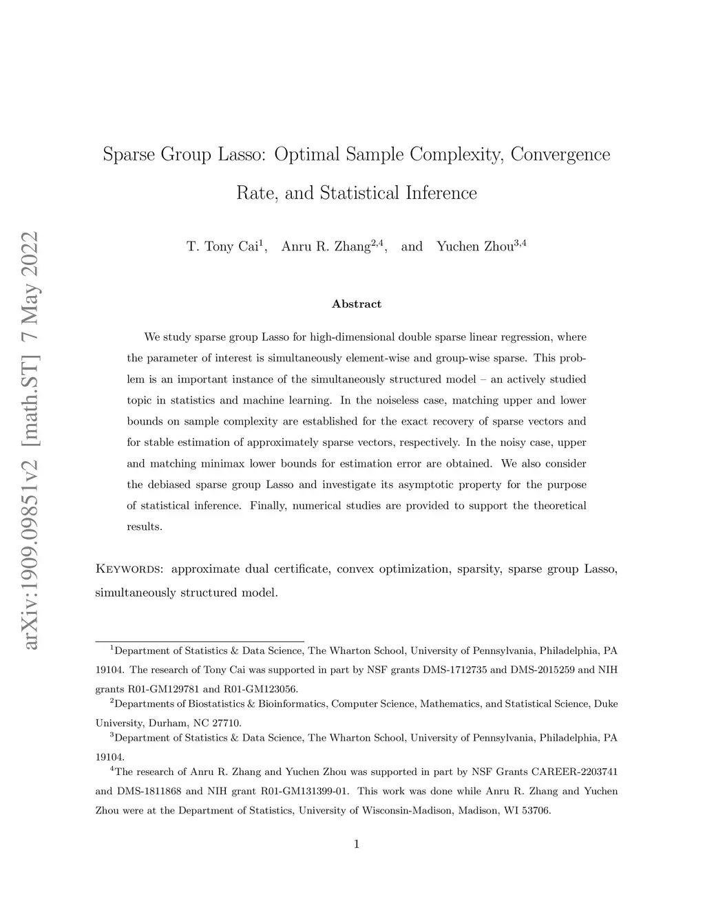 Sparse Group Lasso: Optimal Sample Complexity, Convergence Rate, and