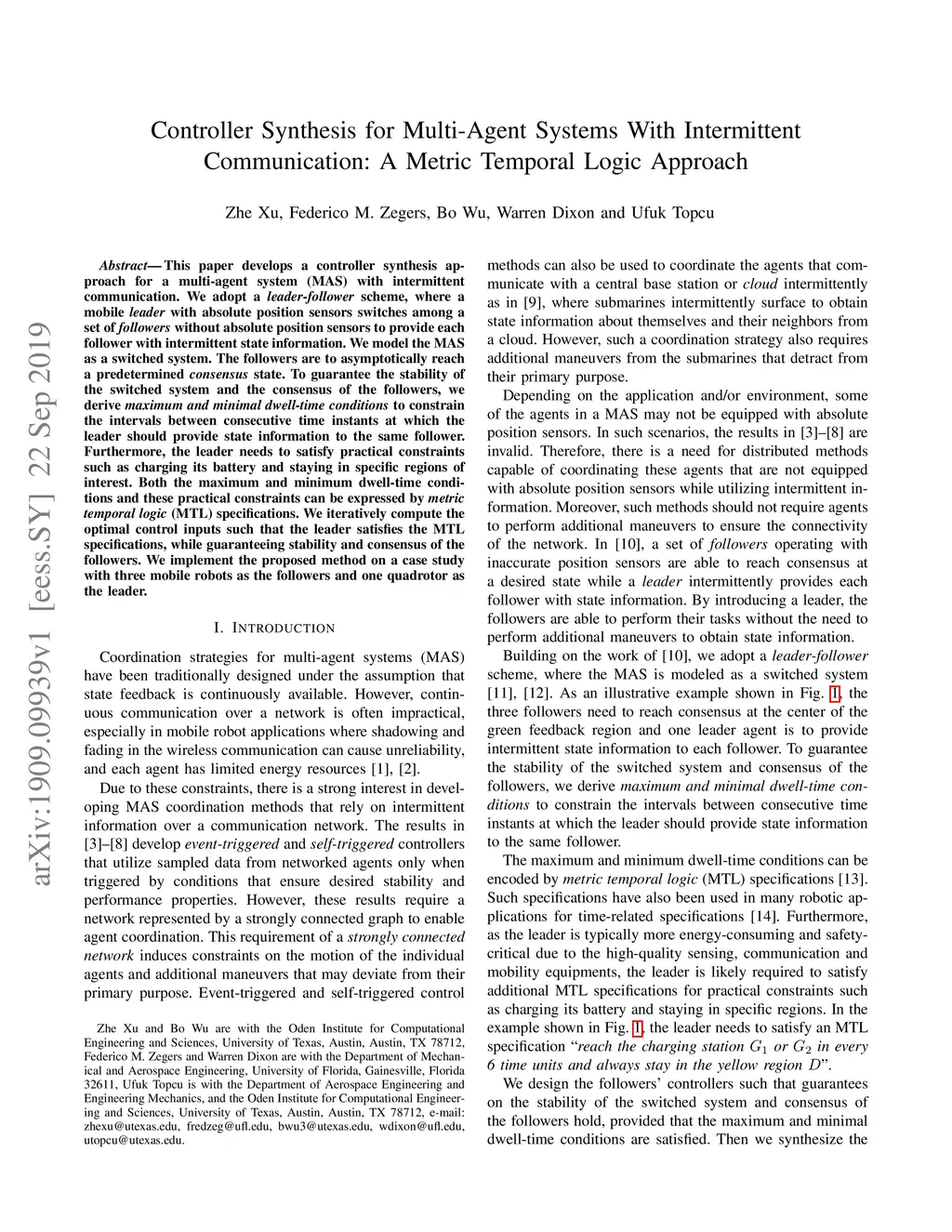 Controller Synthesis for Multi-Agent Systems With Intermittent