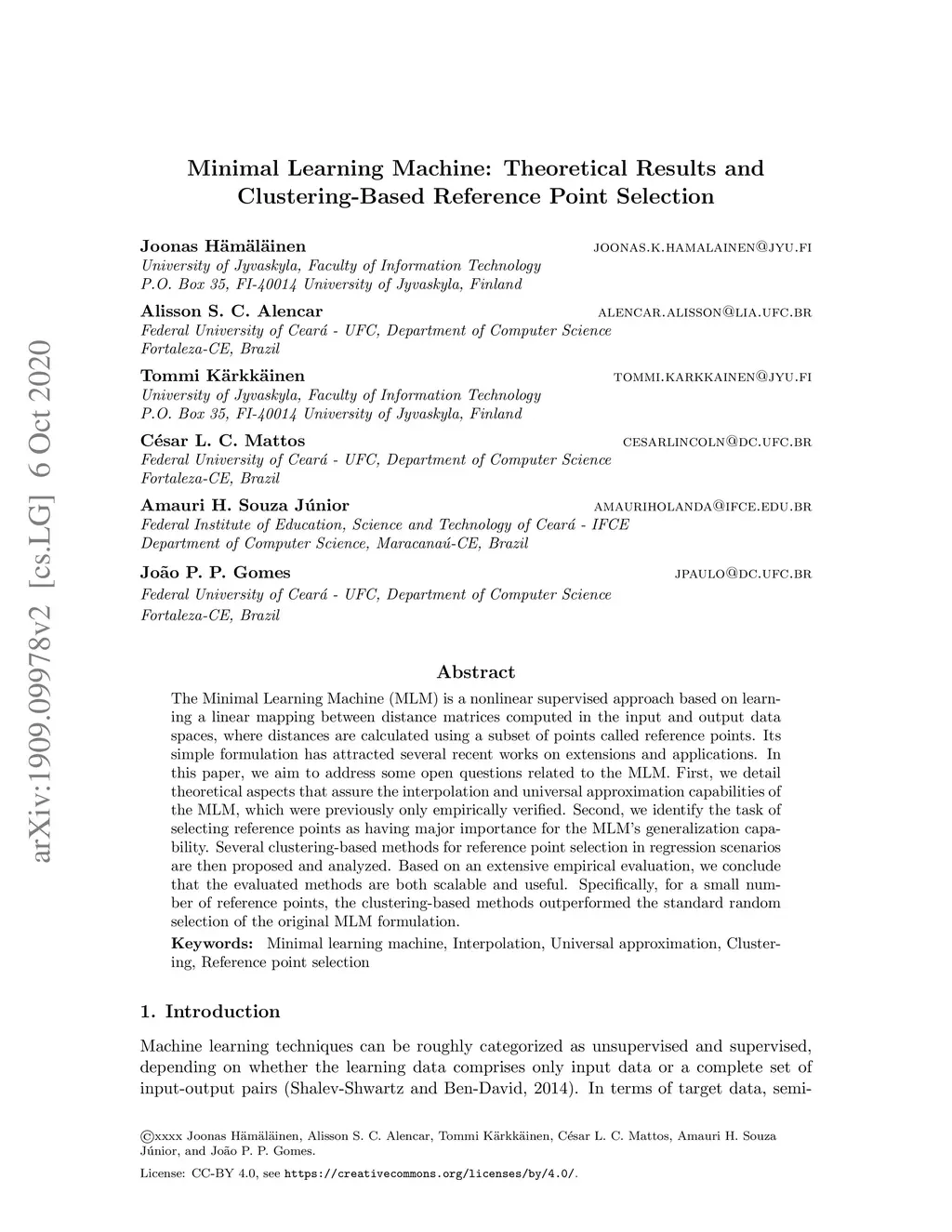 Minimal Learning Machine: Theoretical Results and Clustering-Based
