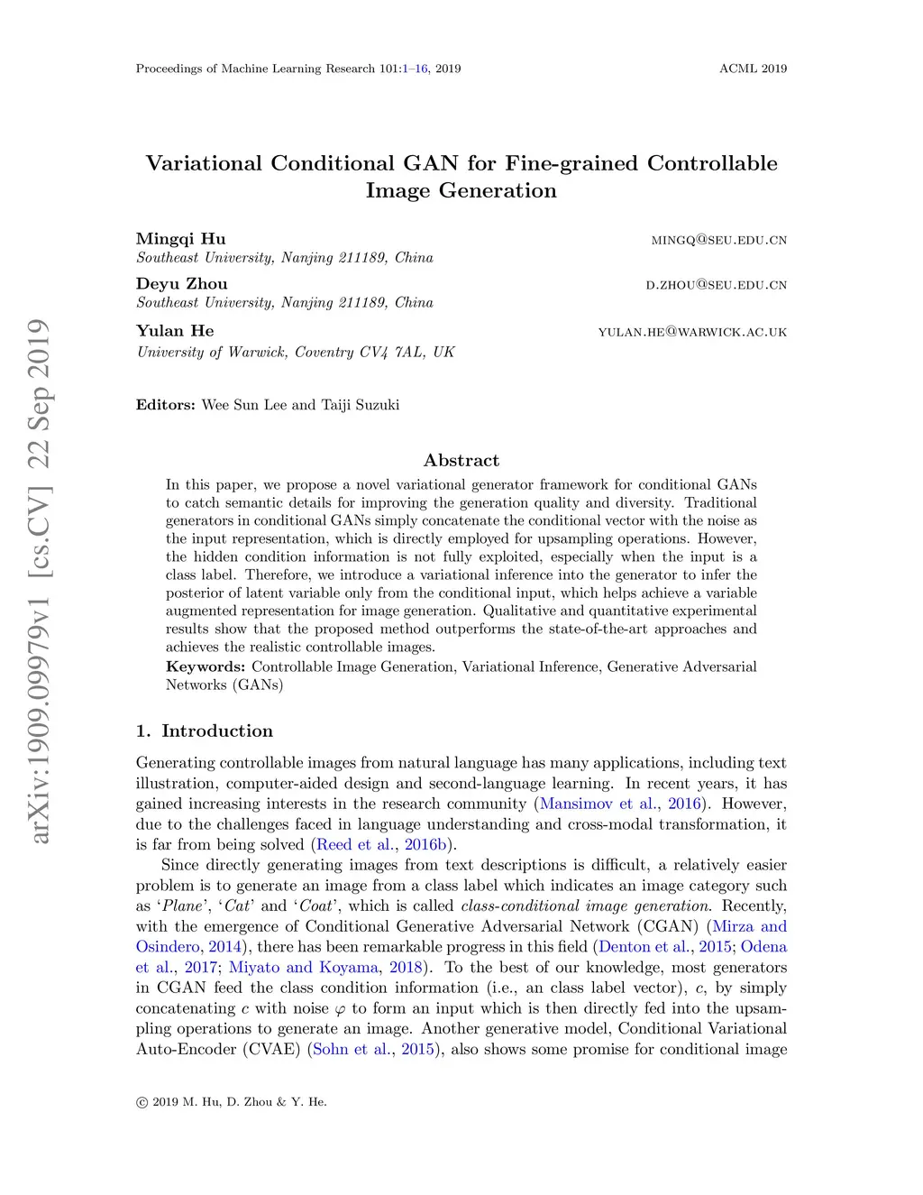Variational Conditional GAN for Fine-grained Controllable Image