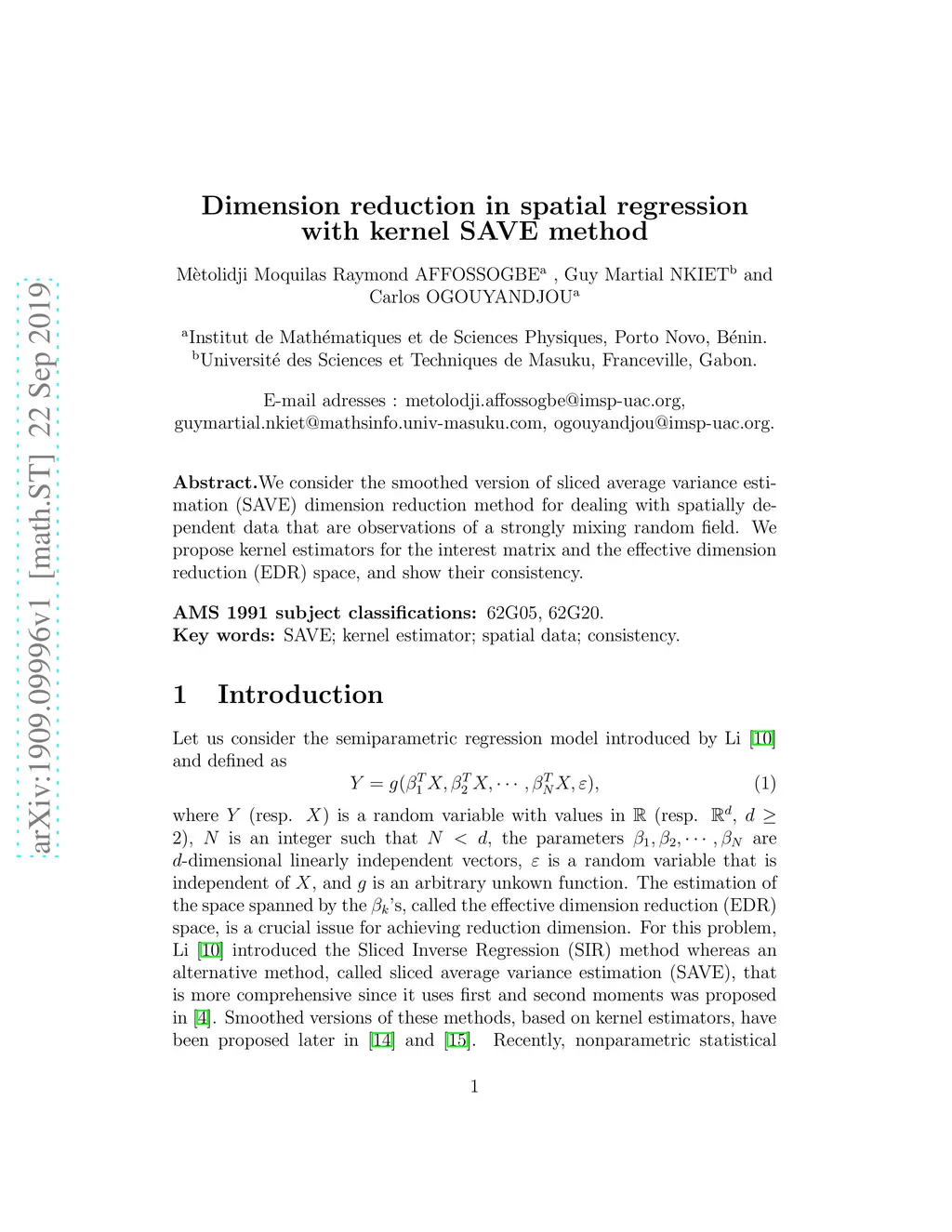 We consider the smoothed version of sliced average variance estimation (SAVE) dimension reduction method for dealing with spatially dependent data that are observations of a strongly mixing random field. We propose kernel estimators for the interest matrix and the effective dimension reduction (EDR) space, and show their consistency.