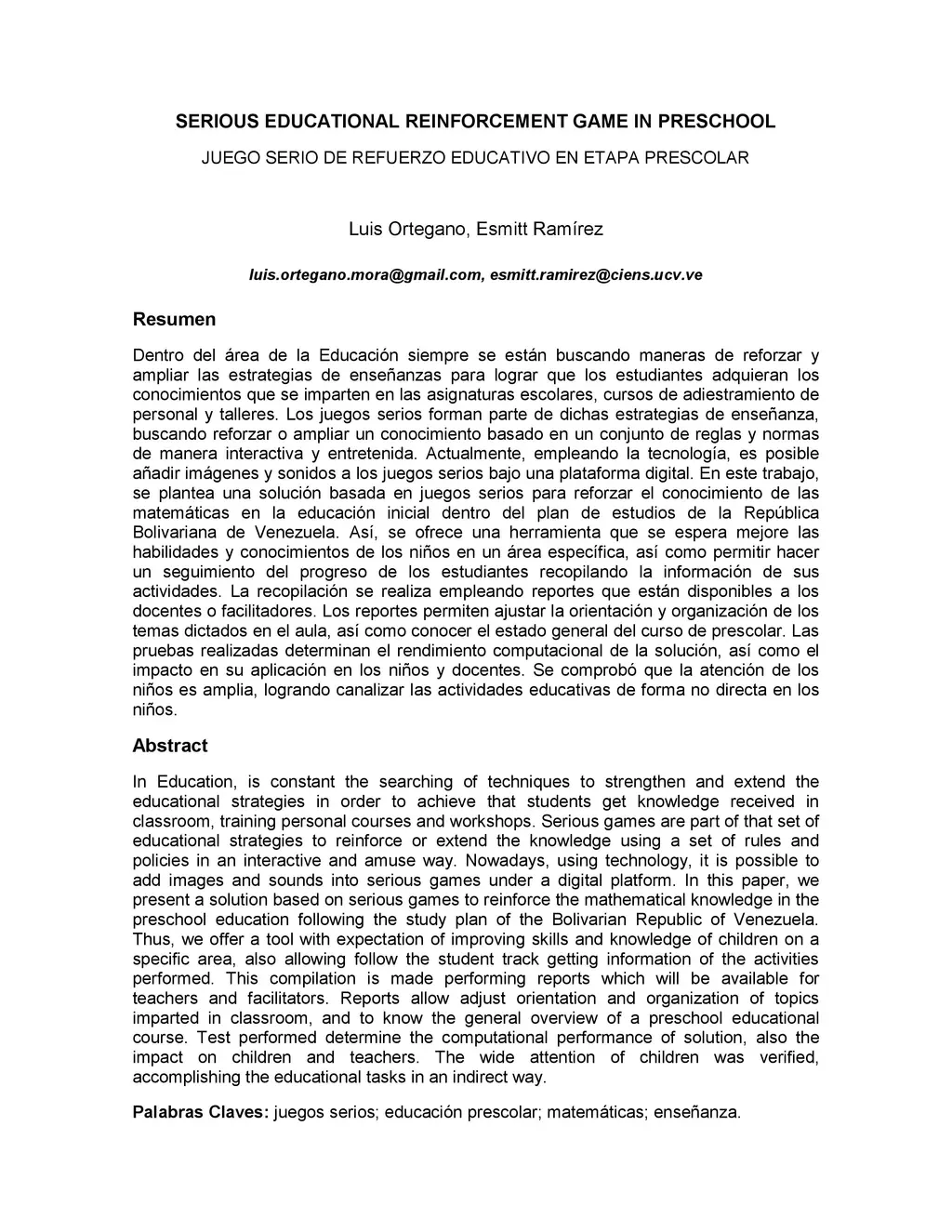 In Education, is constant the searching of techniques to strengthen and extend the educational strategies in order to achieve that students get knowledge received in classroom, training personal courses and workshops. Serious games are part of that set of educational strategies to reinforce or extend the knowledge using a set of rules and policies in an interactive and amuse way. Nowadays, using technology, it is possible to add images and sounds into serious games under a digital platform. In this paper, we present a solution based on serious games to reinforce the mathematical knowledge in the preschool education following the study plan of the Bolivarian Republic of Venezuela. Thus, we offer a tool with expectation of improving skills and knowledge of children on a specific area, also allowing follow the student track getting information of the activities performed. This compilation is made performing reports which will be available for teachers and facilitators. Reports allow adjust orientation and organization of topics imparted in classroom, and to know the general overview of a preschool educational course. Test performed determine the computational performance of solution, also the impact on children and teachers. The wide attention of children was verified, accomplishing the educational tasks in an indirect way.