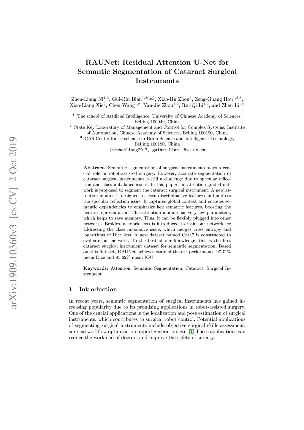 RAUNet: Residual Attention U-Net for Semantic Segmentation of Cataract