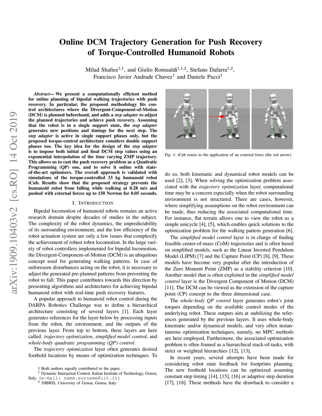 Online DCM Trajectory Generation for Push Recovery of Torque-Controlled