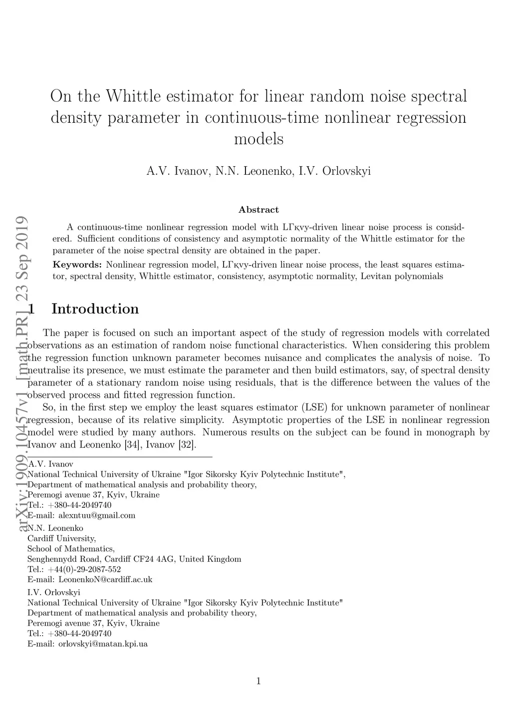 Statistical Inference for Stochastic Processes : An International Journal devoted to Time Series Analysis and the Statistics of Continuous Time Processes and Dynamical Systems (JCTPDS), 2019