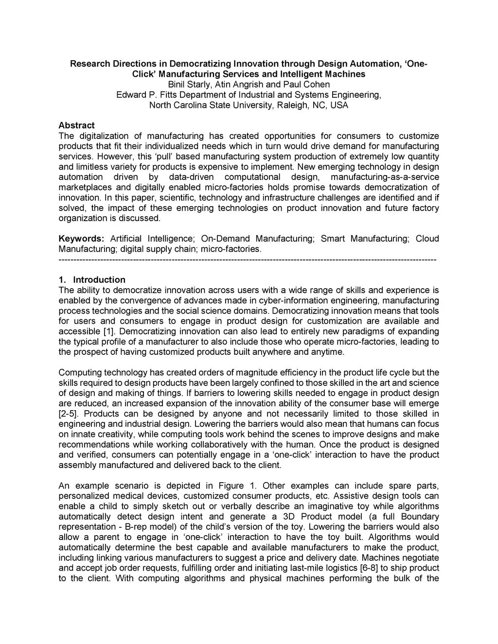 The digitalization of manufacturing has created opportunities for consumers to customize products that fit their individualized needs which in turn would drive demand for manufacturing services. However, this pull-based manufacturing system production of extremely low quantity and limitless variety for products is expensive to implement. New emerging technology in design automation driven by data-driven computational design, manufacturing-as-a-service marketplaces and digitally enabled micro-factories holds promise towards democratization of innovation. In this paper, scientific, technology and infrastructure challenges are identified and if solved, the impact of these emerging technologies on product innovation and future factory organization is discussed.