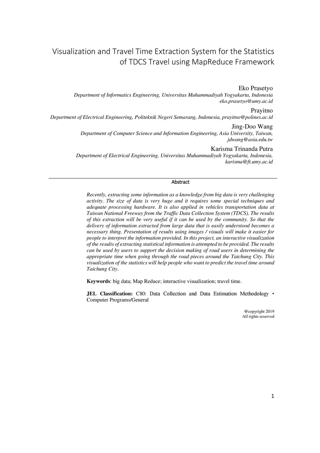 TDCS Travel using MapReduce Framework
