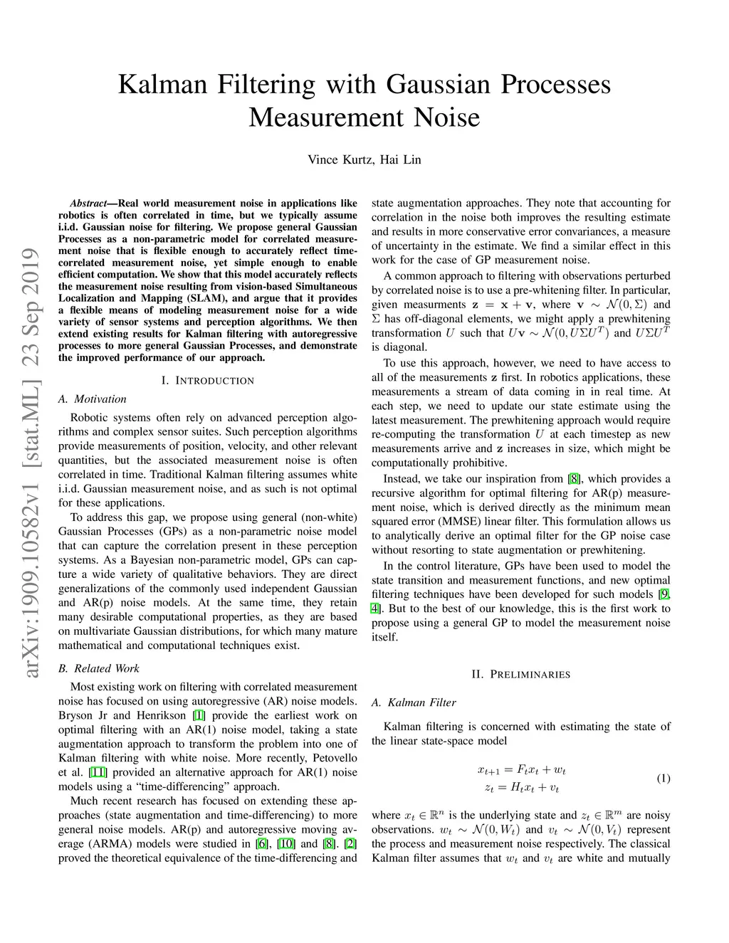 Real-world measurement noise in applications like robotics is often correlated in time, but we typically assume i.i.d. Gaussian noise for filtering. We propose general Gaussian Processes as a non-parametric model for correlated measurement noise that is flexible enough to accurately reflect correlation in time, yet simple enough to enable efficient computation. We show that this model accurately reflects the measurement noise resulting from vision-based Simultaneous Localization and Mapping (SLAM), and argue that it provides a flexible means of modeling measurement noise for a wide variety of sensor systems and perception algorithms. We then extend existing results for Kalman filtering with autoregressive processes to more general Gaussian Processes, and demonstrate the improved performance of our approach.