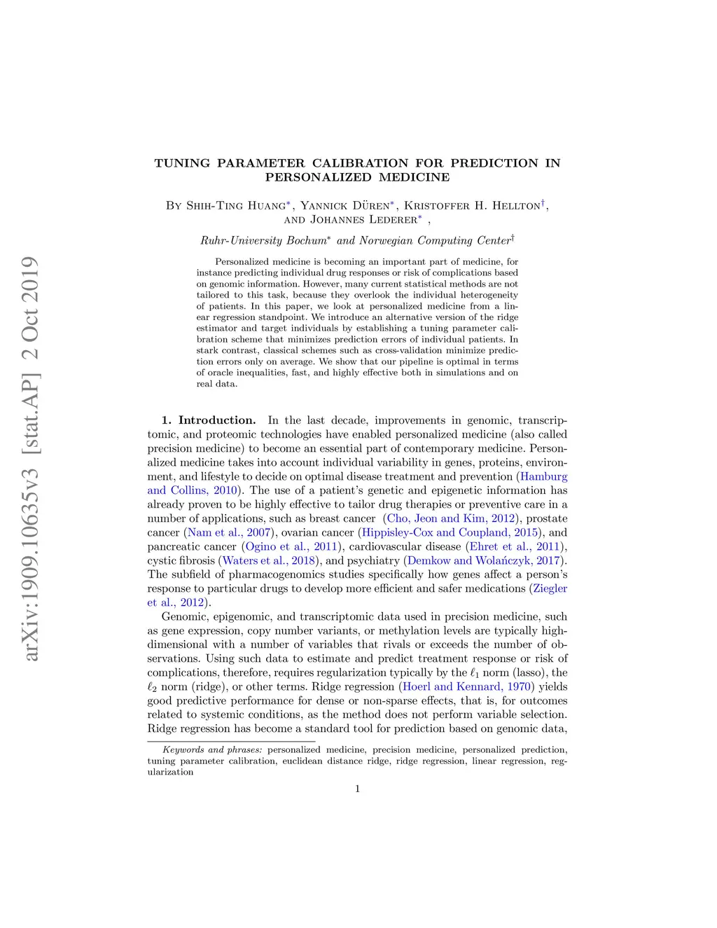 Personalized medicine has become an important part of medicine, for instance predicting individual drug responses based on genomic information. However, many current statistical methods are not tailored to this task, because they overlook the individual heterogeneity of patients. In this paper, we look at personalized medicine from a linear regression standpoint. We introduce an alternative version of the ridge estimator and target individuals by establishing a tuning parameter calibration scheme that minimizes prediction errors of individual patients. In stark contrast, classical schemes such as cross-validation minimize prediction errors only on average. We show that our pipeline is optimal in terms of oracle inequalities, fast, and highly effective both in simulations and on real data.