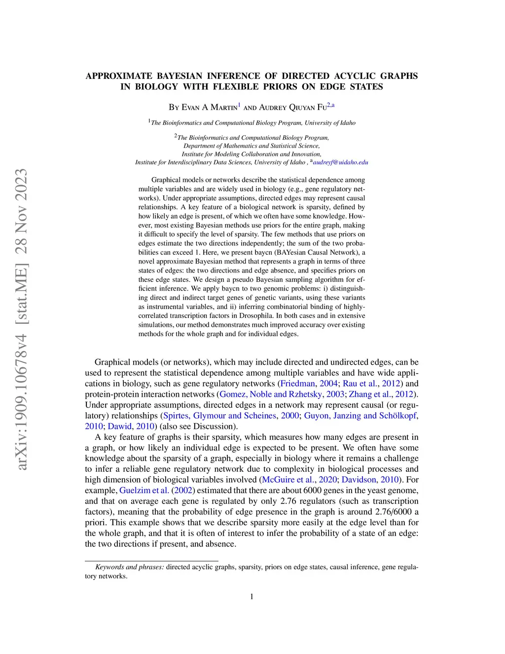 Approximate Bayesian inference of directed acyclic graphs in biology
