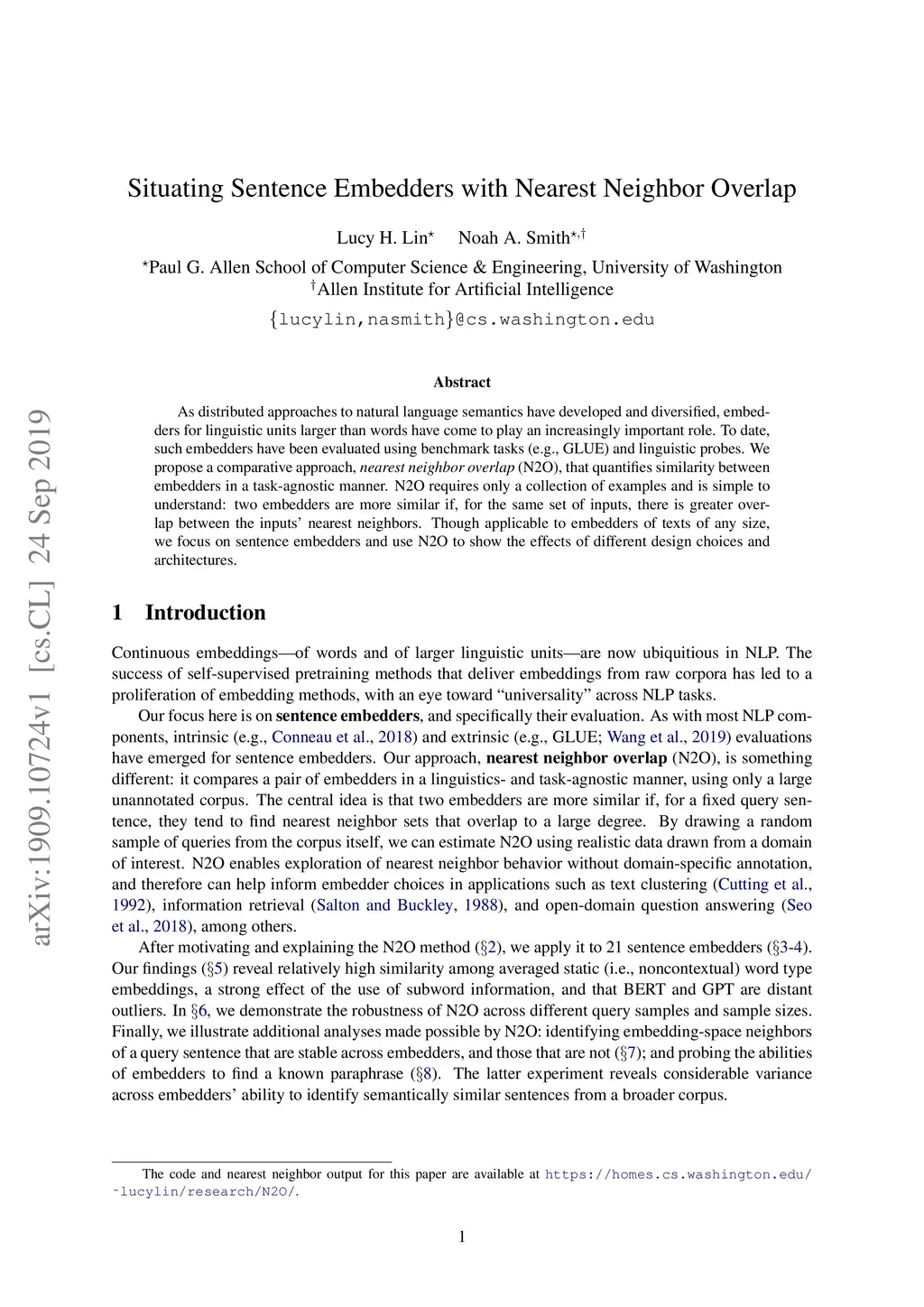 Situating Sentence Embedders with Nearest Neighbor Overlap