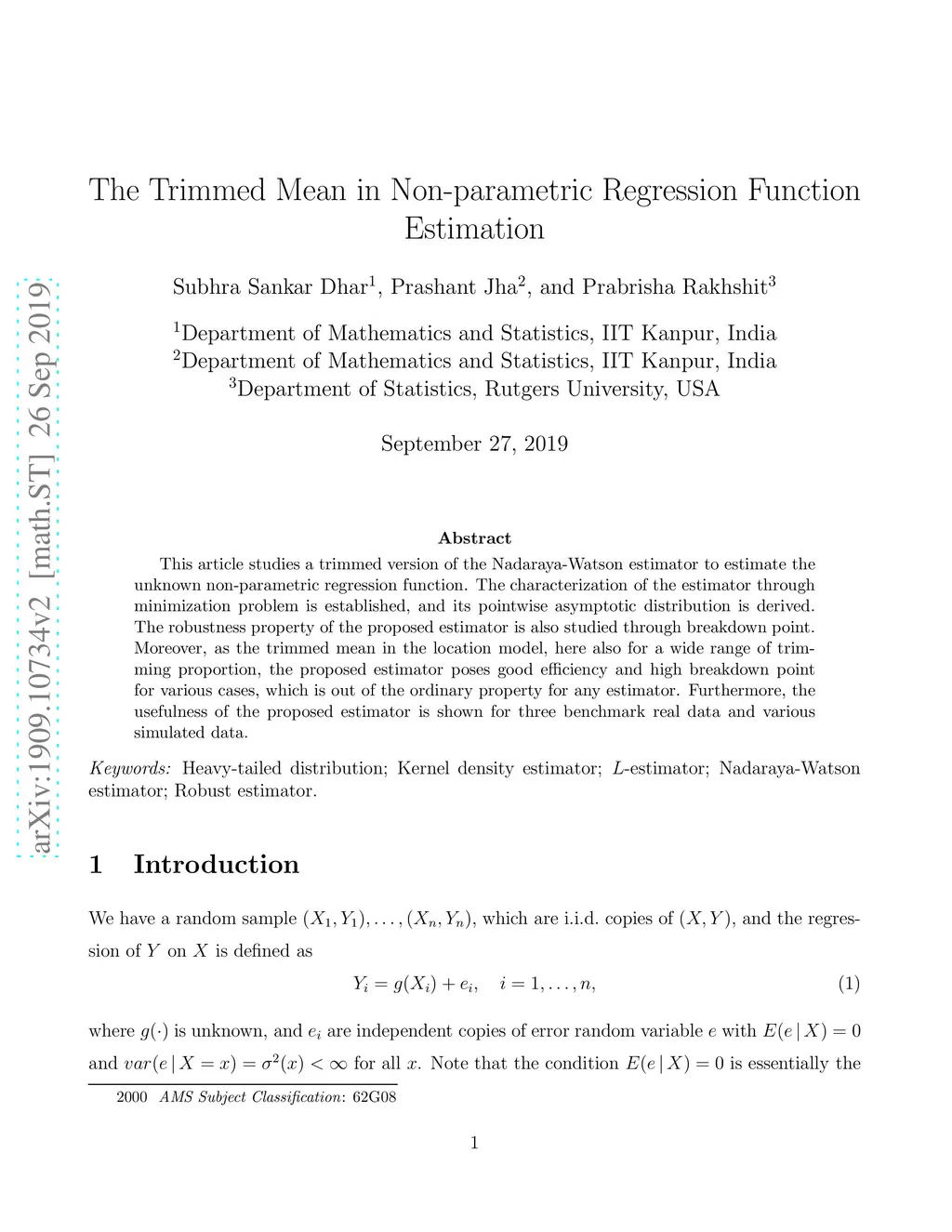 The Trimmed Mean in Non-parametric Regression Function Estimation