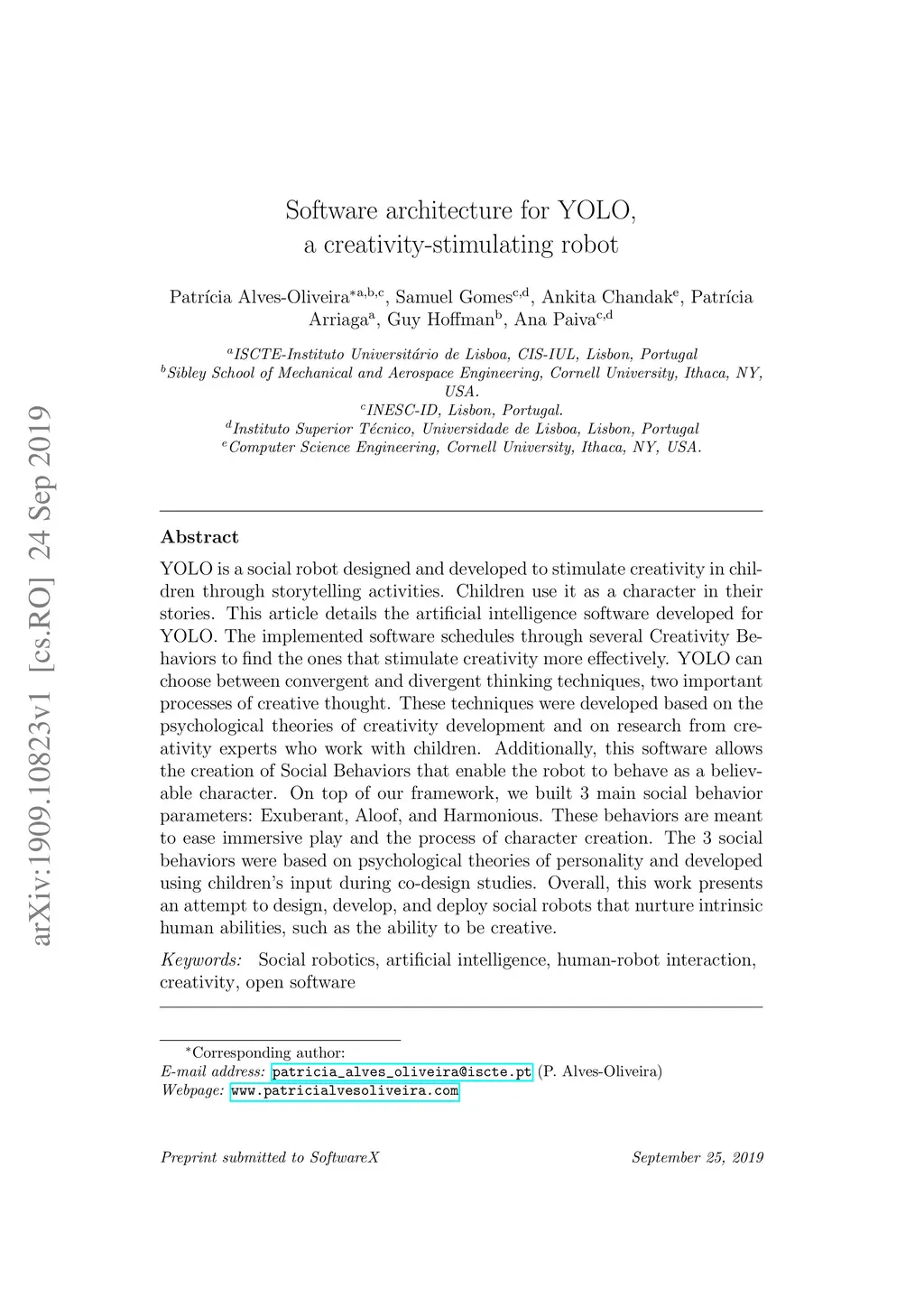 Software architecture for YOLO, a creativity-stimulating robot