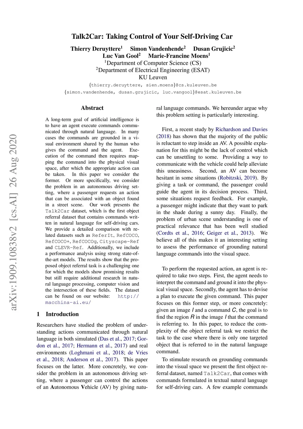 Talk2Car: Taking Control of Your Self-Driving Car