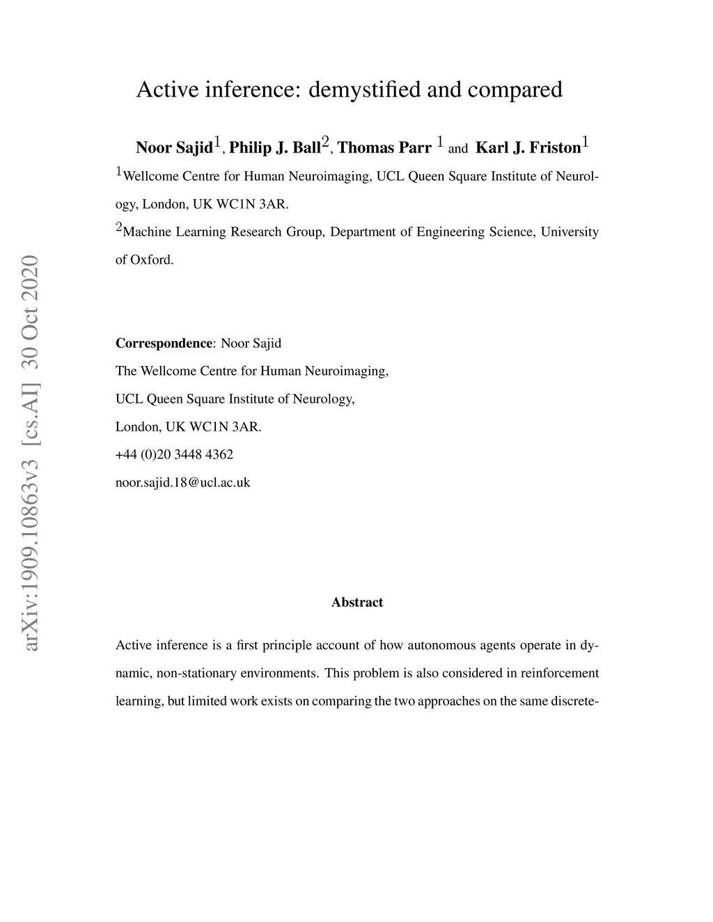 Active inference is a first principle account of how autonomous agents operate in dynamic, non-stationary environments. This problem is also considered in reinforcement learning (RL), but limited work exists on comparing the two approaches on the same discrete-state environments. In this paper, we provide: 1) an accessible overview of the discrete-state formulation of active inference, highlighting natural behaviors in active inference that are generally engineered in RL; 2) an explicit discrete-state comparison between active inference and RL on an OpenAI gym baseline. We begin by providing a condensed overview of the active inference literature, in particular viewing the various natural behaviors of active inference agents through the lens of RL. We show that by operating in a pure belief-based setting, active inference agents can carry out epistemic exploration, and account for uncertainty about their environment in a Bayes-optimal fashion. Furthermore, we show that the reliance on an explicit reward signal in RL is removed in active inference, where reward can simply be treated as another observation; even in the total absence of rewards, agent behaviors are learned through preference learning. We make these properties explicit by showing two scenarios in which active inference agents can infer behaviors in reward-free environments compared to both Q-learning and Bayesian model-based RL agents; by placing zero prior preferences over rewards and by learning the prior preferences over the observations corresponding to reward. We conclude by noting that this formalism can be applied to more complex settings if appropriate generative models can be formulated. In short, we aim to demystify the behavior of active inference agents by presenting an accessible discrete state-space and time formulation, and demonstrate these behaviors in a OpenAI gym environment, alongside RL agents.