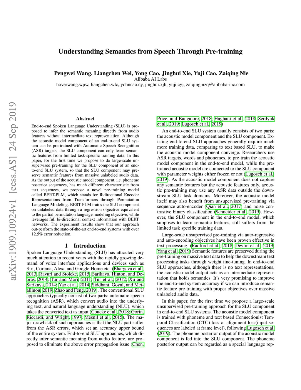 Understanding Semantics from Speech Through Pre-training