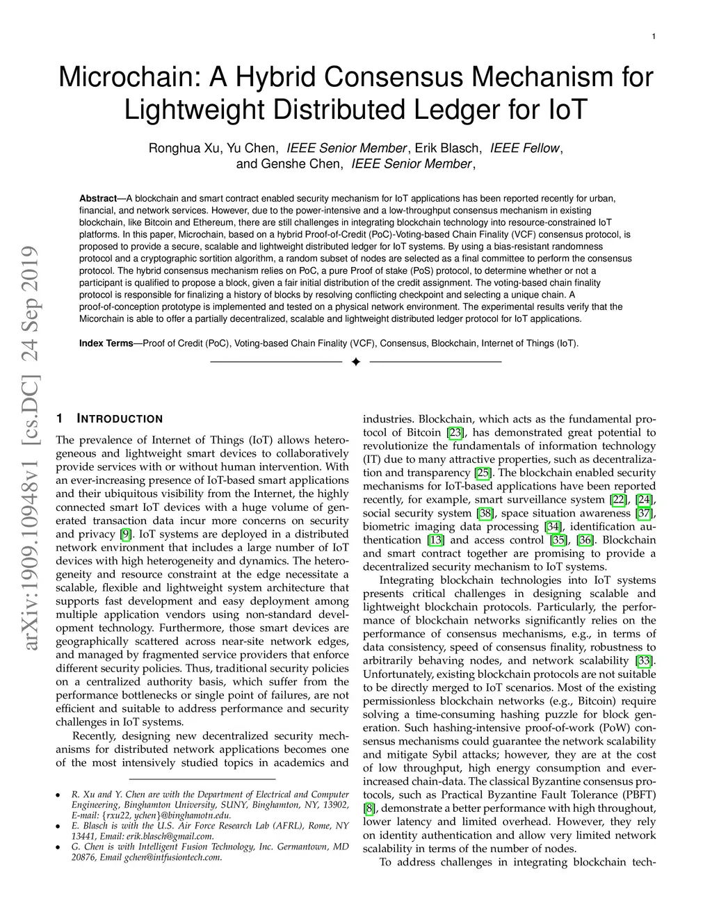 Microchain: A Hybrid Consensus Mechanism for Lightweight Distributed