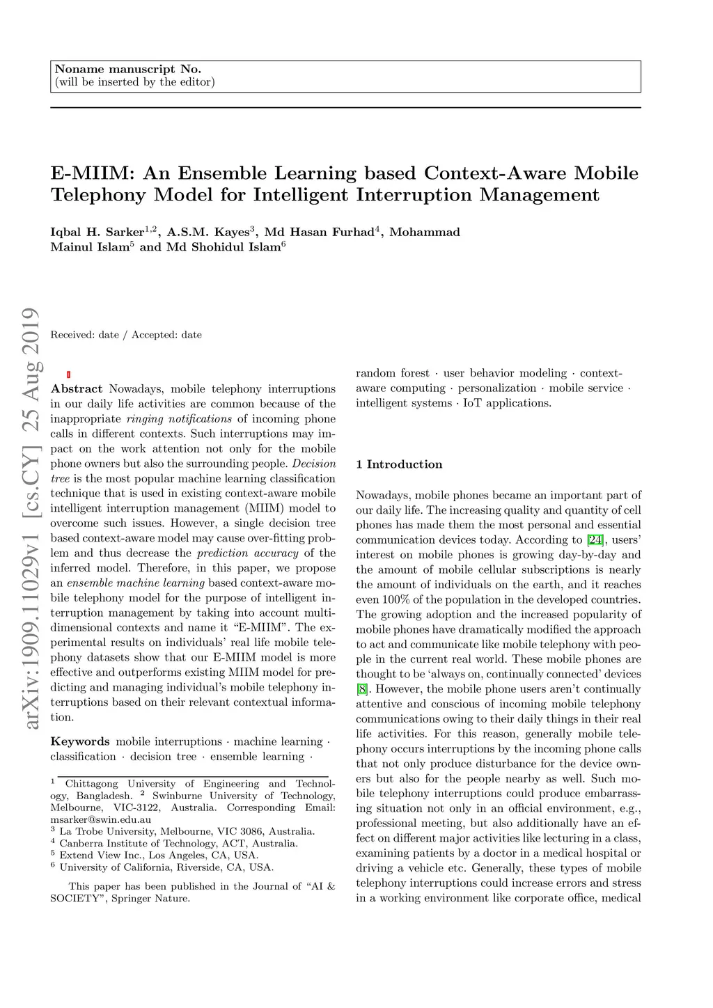 E-MIIM: An Ensemble Learning based Context-Aware Mobile Telephony Model