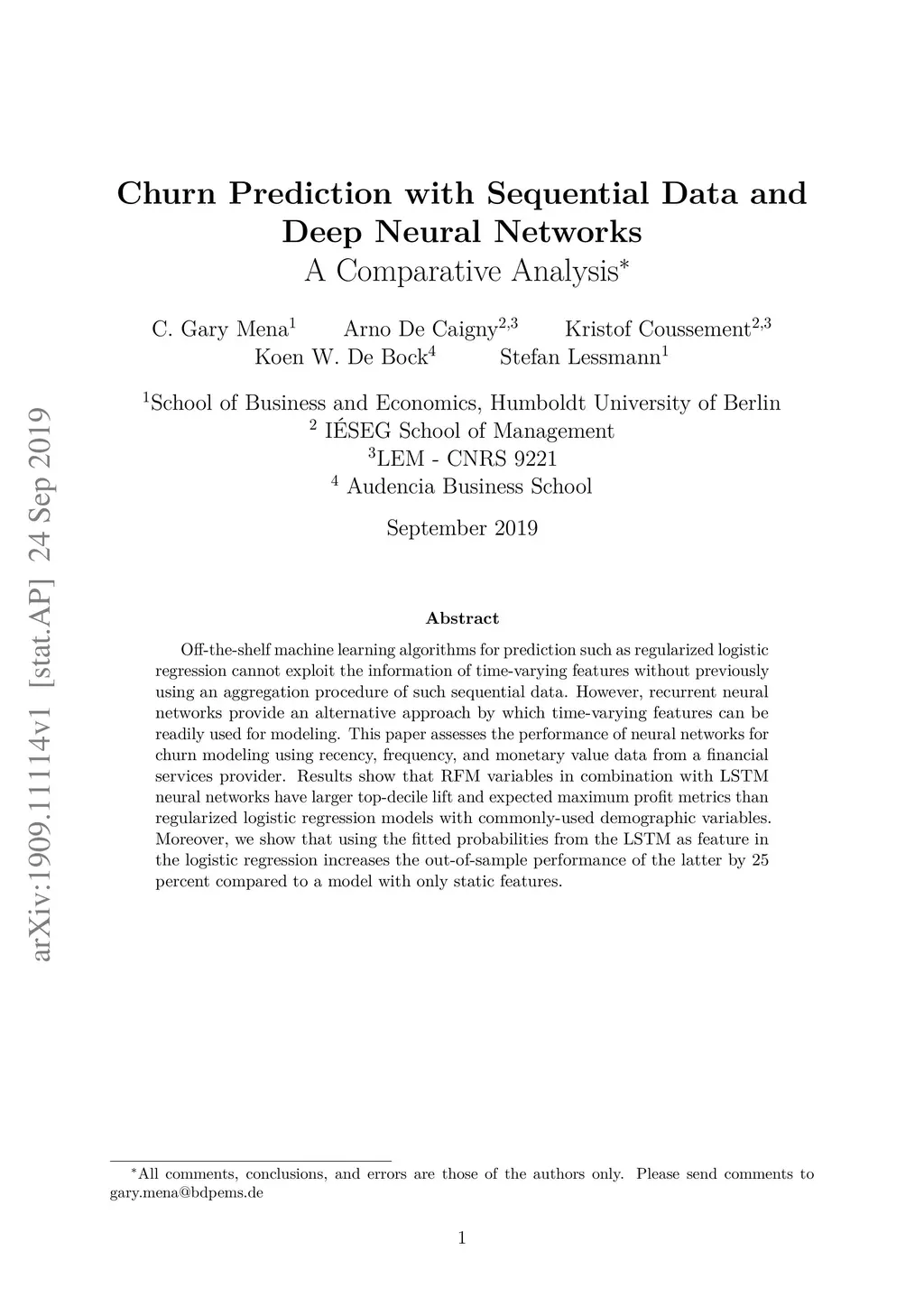 Churn Prediction with Sequential Data and Deep Neural Networks. A