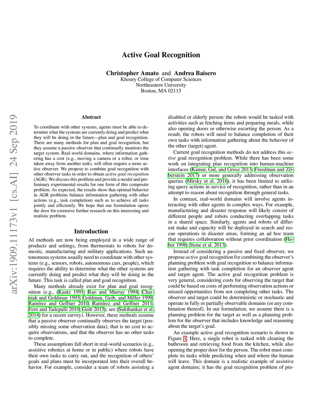 To coordinate with other systems, agents must be able to determine what the systems are currently doing and predict what they will be doing in the future---plan and goal recognition. There are many methods for plan and goal recognition, but they assume a passive observer that continually monitors the target system. Real-world domains, where information gathering has a cost (e.g., moving a camera or a robot, or time taken away from another task), will often require a more active observer. We propose to combine goal recognition with other observer tasks in order to obtain \emph{active goal recognition} (AGR). We discuss this problem and provide a model and preliminary experimental results for one form of this composite problem. As expected, the results show that optimal behavior in AGR problems balance information gathering with other actions (e.g., task completion) such as to achieve all tasks jointly and efficiently. We hope that our formulation opens the door for extensive further research on this interesting and realistic problem.