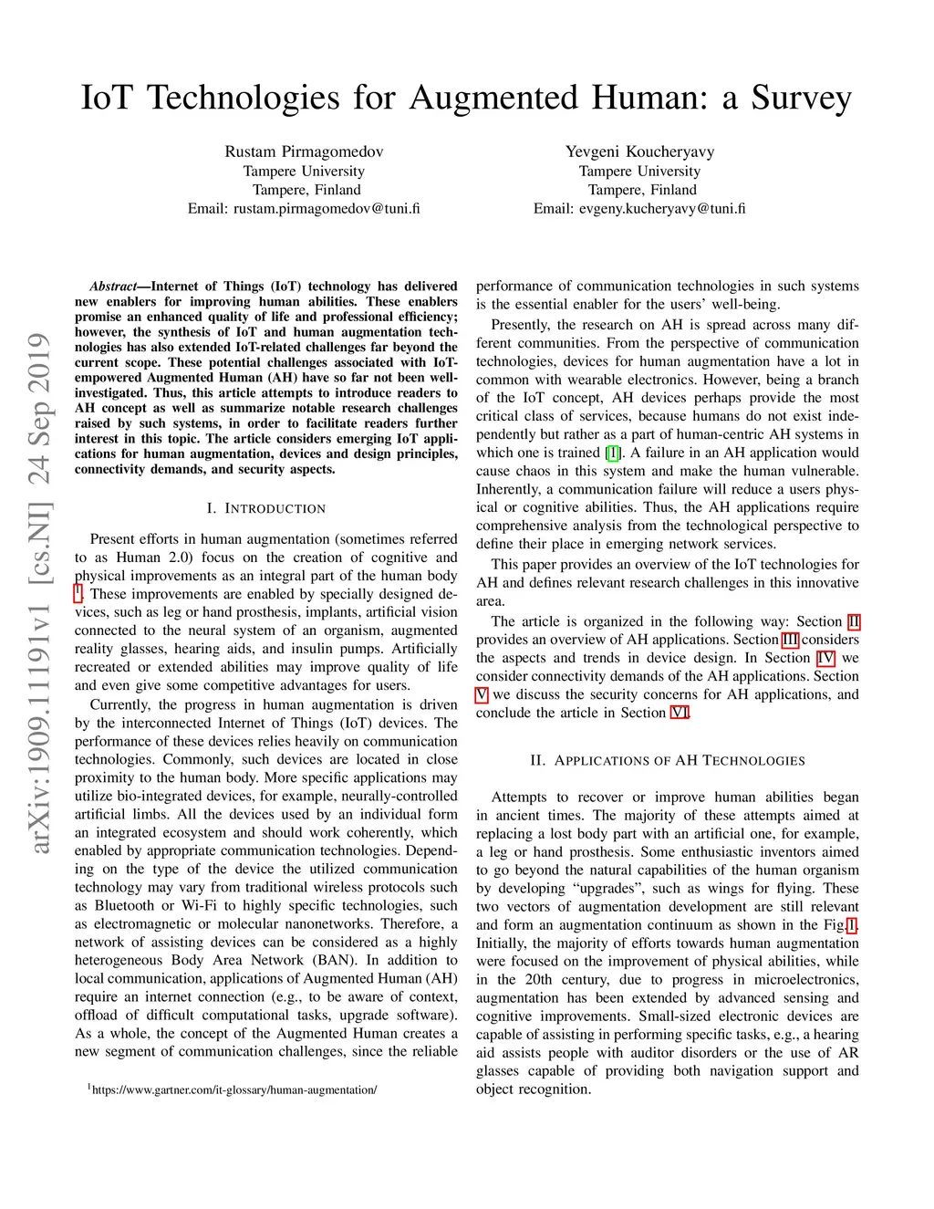 IoT Technologies for Augmented Human: a Survey