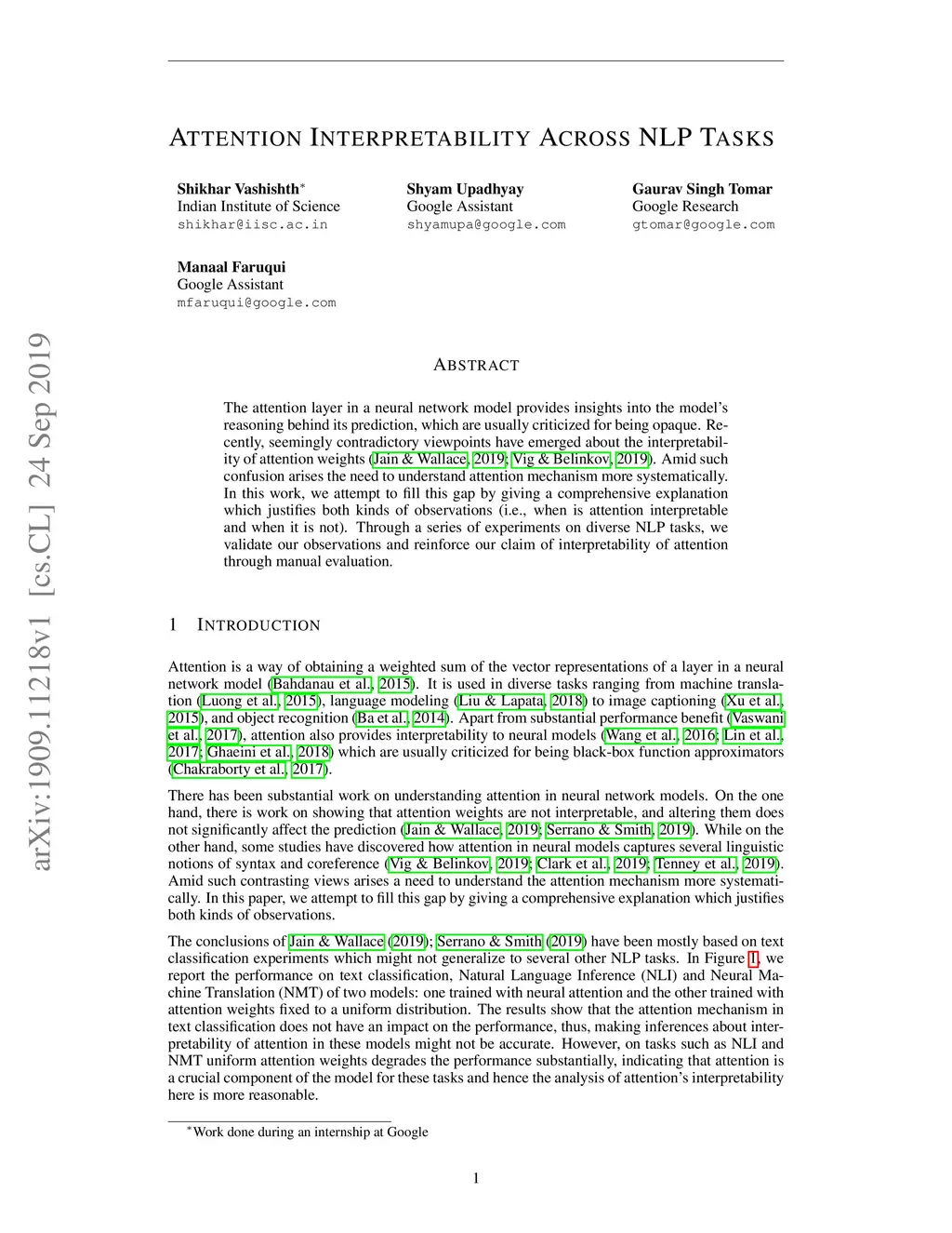 Attention Interpretability Across NLP Tasks