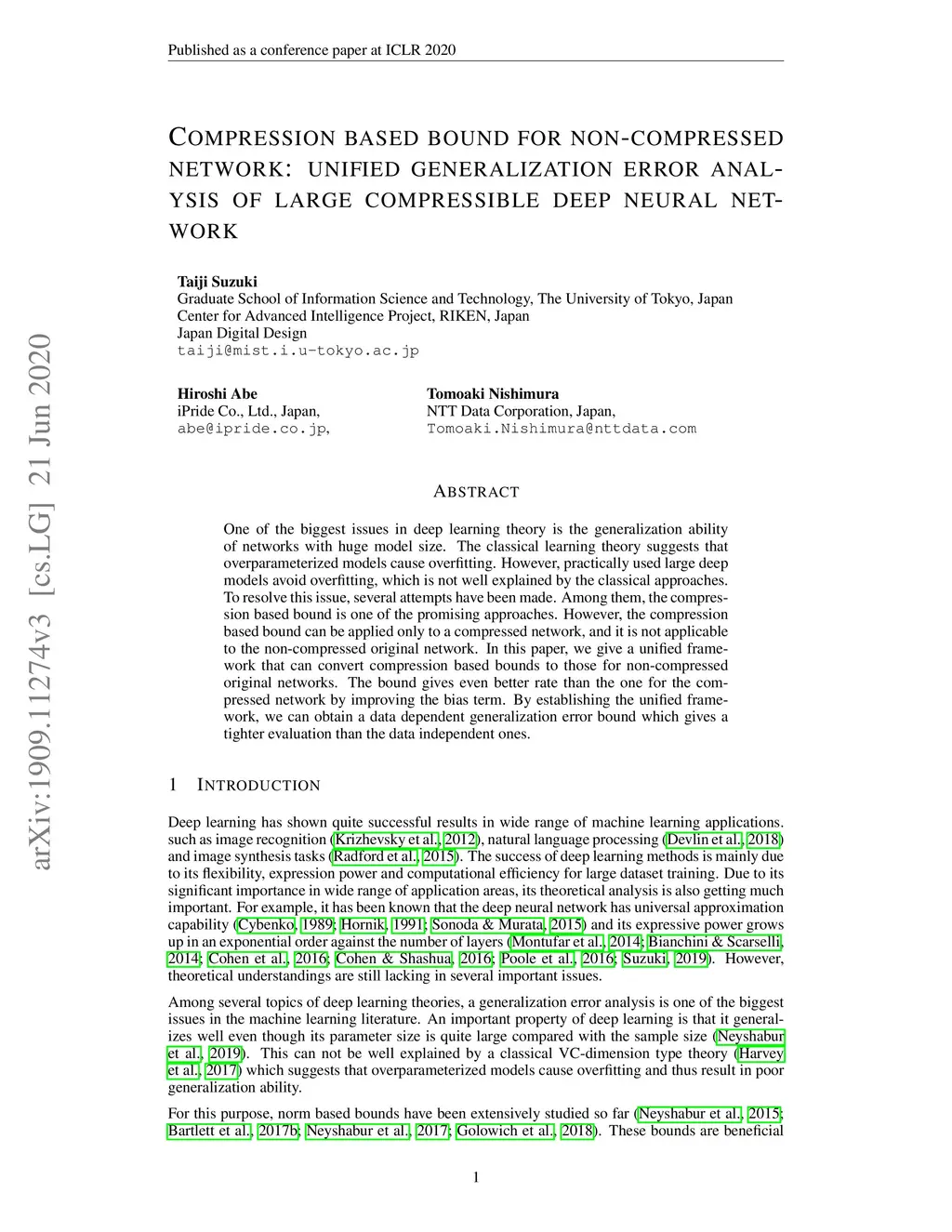 Compression based bound for non-compressed network: unified