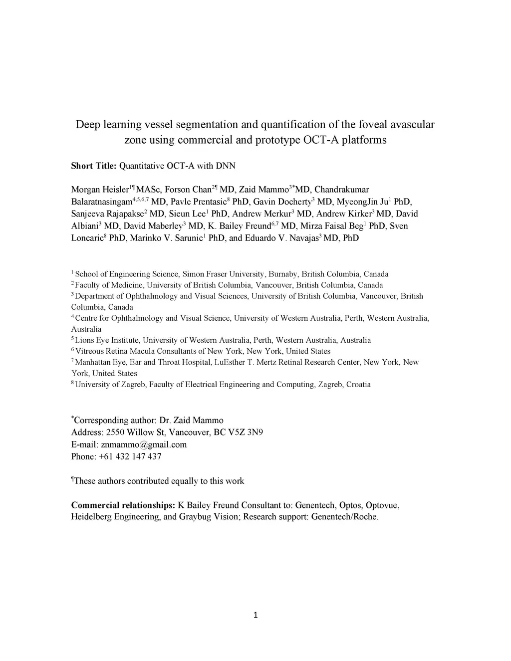 Automatic quantification of perifoveal vessel densities in optical coherence tomography angiography (OCT-A) images face challenges such as variable intra- and inter-image signal to noise ratios, projection artefacts from outer vasculature layers, and motion artefacts. This study demonstrates the utility of deep neural networks for automatic quantification of foveal avascular zone (FAZ) parameters and perifoveal vessel density of OCT-A images in healthy and diabetic eyes. OCT-A images of the foveal region were acquired using three OCT-A systems: a 1060nm Swept Source (SS)-OCT prototype, RTVue XR Avanti (Optovue Inc., Fremont, CA), and the ZEISS Angioplex (Carl Zeiss Meditec, Dublin, CA). Automated segmentation was then performed using a deep neural network. Four FAZ morphometric parameters (area, min/max diameter, and eccentricity) and perifoveal vessel density were used as outcome measures. The accuracy, sensitivity and specificity of the DNN vessel segmentations were comparable across all three device platforms. No significant difference between the means of the measurements from automated and manual segmentations were found for any of the outcome measures on any system. The intraclass correlation coefficient (ICC) was also good (> 0.51) for all measurements. Automated deep learning vessel segmentation of OCT-A may be suitable for both commercial and research purposes for better quantification of the retinal circulation.