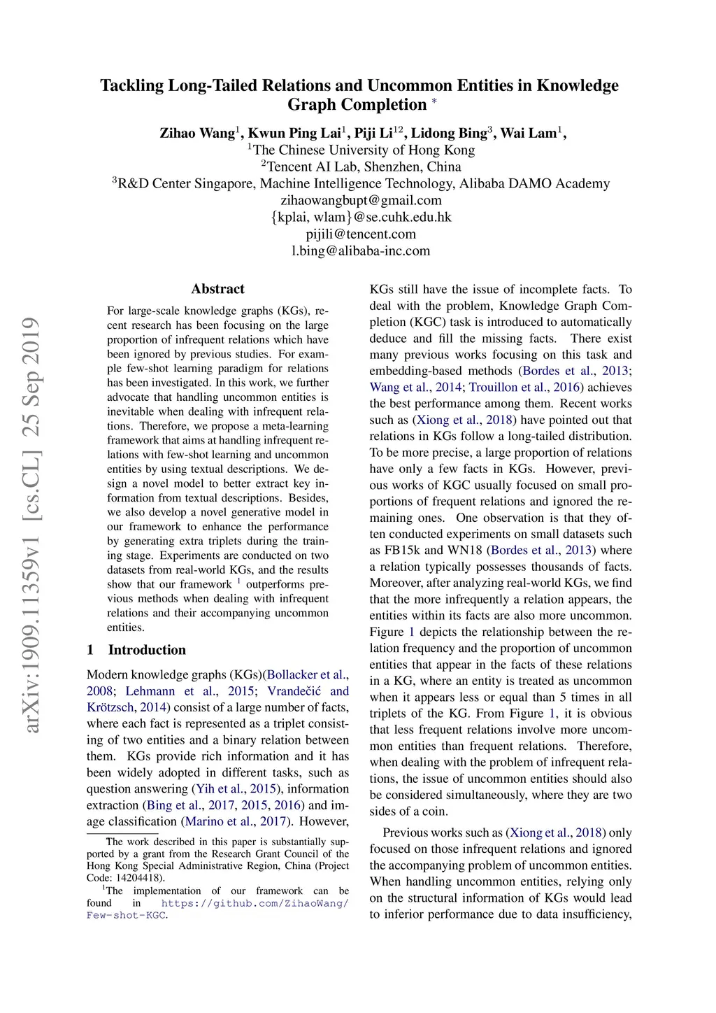 Tackling Long-Tailed Relations and Uncommon Entities in Knowledge Graph