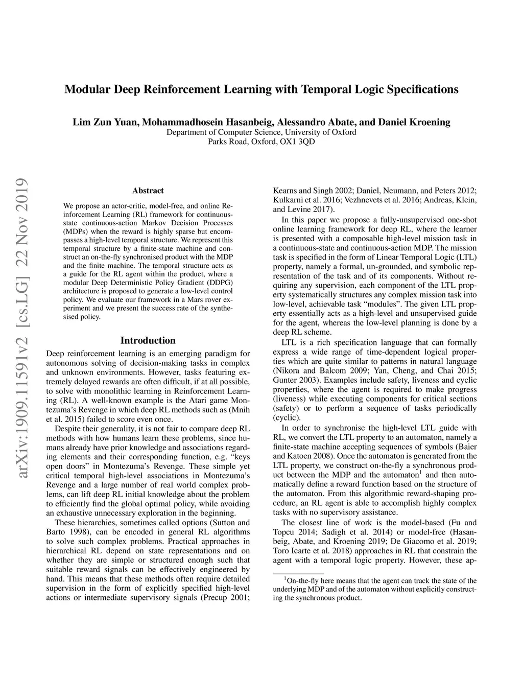 Modular Deep Reinforcement Learning with Temporal Logic Specifications
