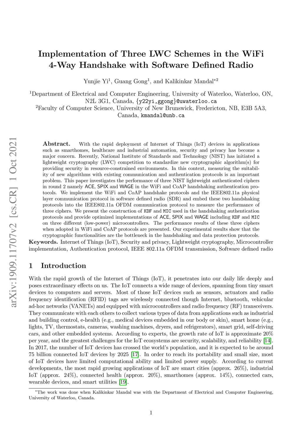 Implementation of three LWC Schemes in the WiFi 4-Way Handshake with